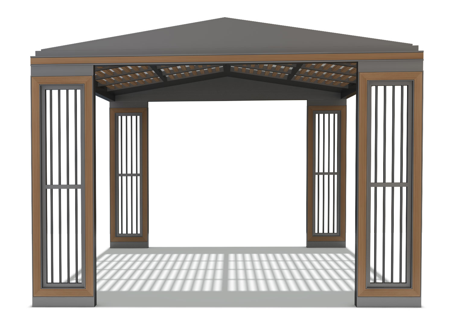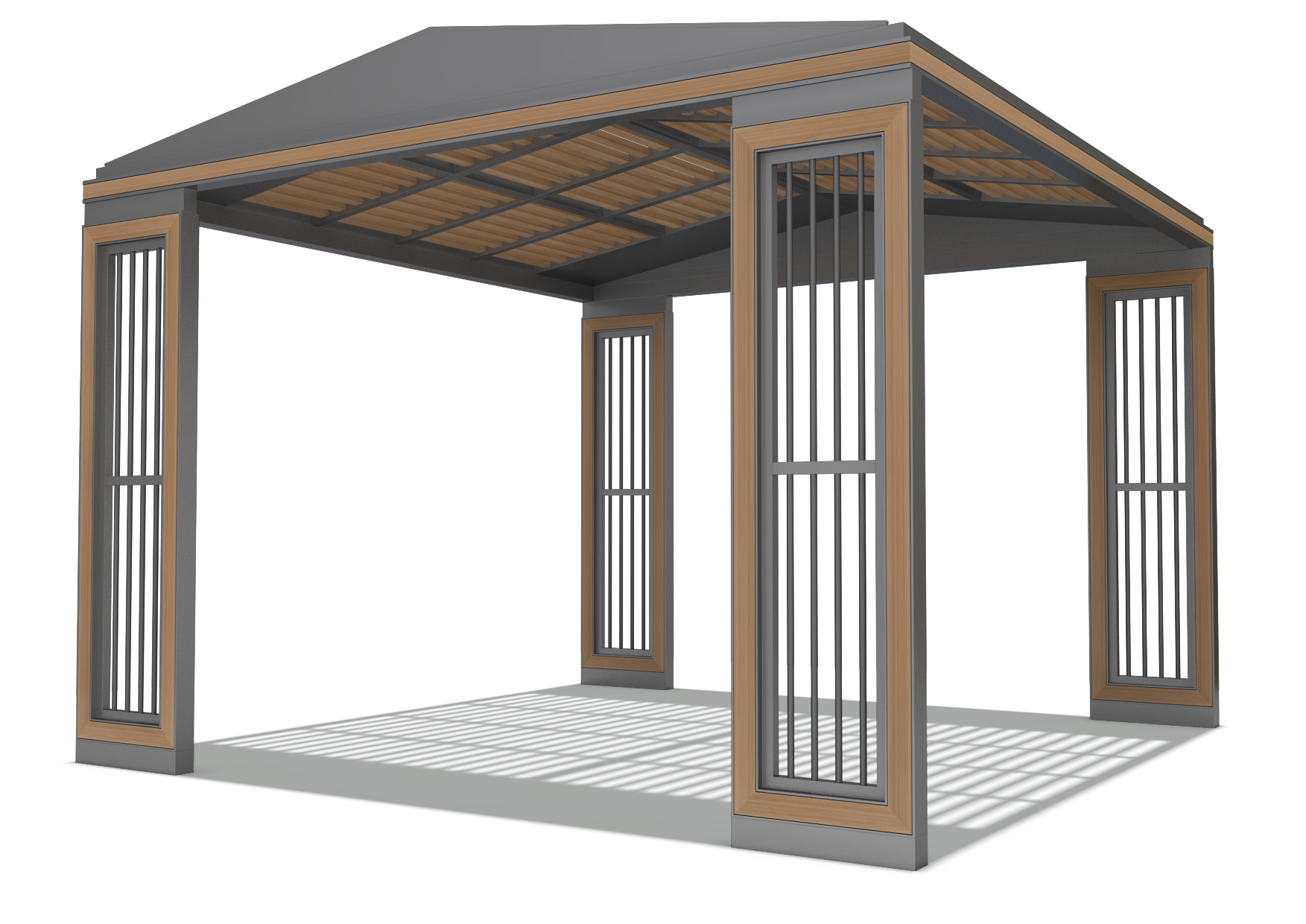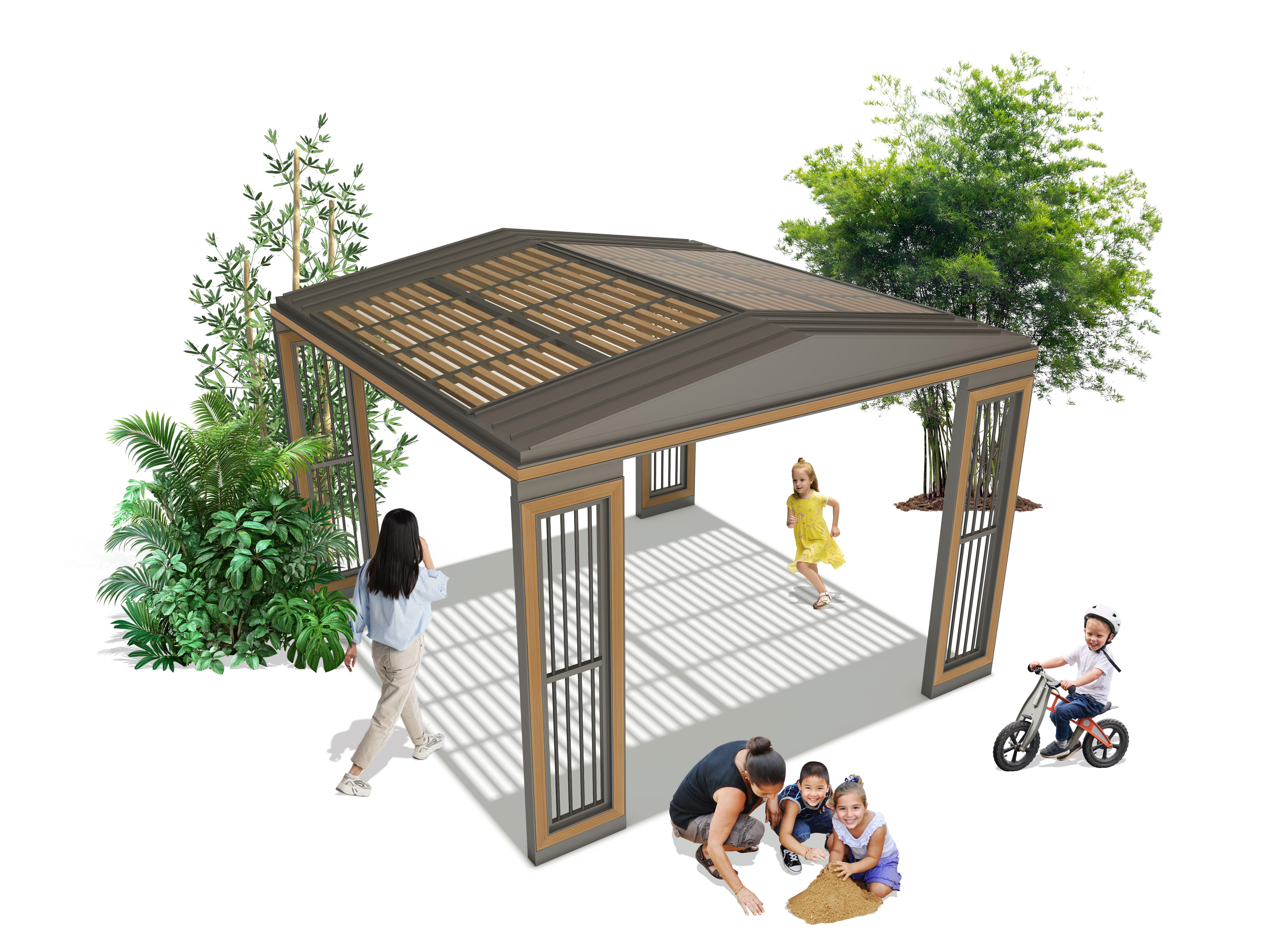 루프 슬랫 가제보 (Roof Slat Gazebo)|GC-P-125A 제품목록으로 바로가기 자료 및 바로가기 나라장터 바로연결 도면 다운로드 시공사진 보러가기 기타 경사형 루버 지붕과 우드 포인트 기둥을 조화롭게 구성해 자연스러운 그늘과 개방감을 제공하는 쉼터입니다. 슬릿 라인의 기둥 디자인이 공간에 세련된 리듬감을 더하며, 가족 활동·어린이 공간에 특히 잘 어울립니다. 제품명 루프 슬랫 가제보 (Roof Slat Gazebo)|GC-P-125A 물품식별번호 25651488 규격 4,000 × 4,000 × 2,975(H) 재질 stl, galvanized, hard wood, polycarbonate 루프 슬랫 가제보 (Roof Slat Gazebo)|GC-P-125A 물품식별번호 25651488 규격 4,000 × 4,000 × 2,975(H) 재질 stl, galvanized, hard wood, polycarbonate 기타 경사형 루버 지붕과 우드 포인트 기둥을 조화롭게 구성해 자연스러운 그늘과 개방감을 제공하는 쉼터입니다. 슬릿 라인의 기둥 디자인이 공간에 세련된 리듬감을 더하며, 가족 활동·어린이 공간에 특히 잘 어울립니다. 자료 및 바로가기 나라장터 바로연결 도면 다운로드 시공사진 보러가기