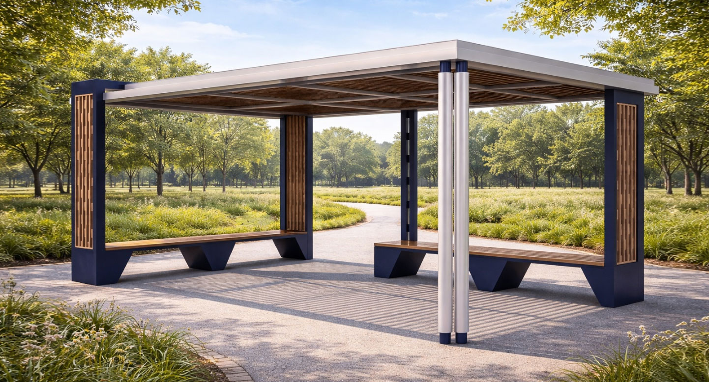 미드센추리 쉘터 (Mid-Century Shelter)|GC-P-786 제품목록으로 바로가기 자료 및 바로가기 나라장터 바로연결 도면 다운로드 시공사진 보러가기 기타 우드 패턴과 간결한 구조 라인을 결합해 세련된 휴식 분위기를 제공하며, 개방형 벤치 구성으로 공원·단지·캠퍼스에서 자연스럽게 소통이 이루어지는 커뮤니티 쉼터입니다. 제품명 미드센추리 쉘터 (Mid-Century Shelter)|GC-P-786 물품식별번호 25010276 규격 6,000 × 4,000 × 2,800(H) 재질 stl, galvanized, polycarbonate, hard wood, hpl 미드센추리 쉘터 (Mid-Century Shelter)|GC-P-786 물품식별번호 25010276 규격 6,000 × 4,000 × 2,800(H) 재질 stl, galvanized, polycarbonate, hard wood, hpl 기타 우드 패턴과 간결한 구조 라인을 결합해 세련된 휴식 분위기를 제공하며, 개방형 벤치 구성으로 공원·단지·캠퍼스에서 자연스럽게 소통이 이루어지는 커뮤니티 쉼터입니다. 자료 및 바로가기 나라장터 바로연결 도면 다운로드 시공사진 보러가기