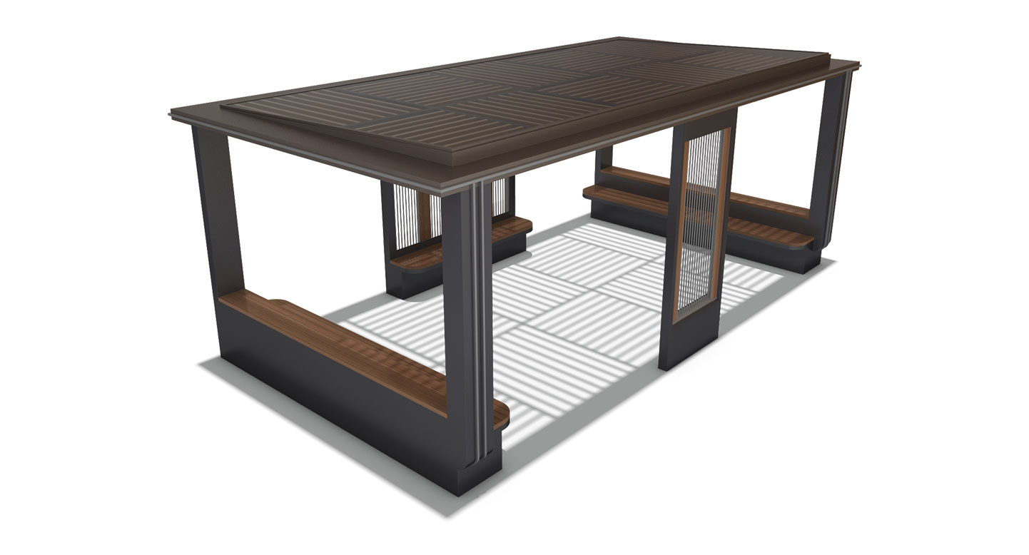 모듈라 쉼터 (Modular Shelter)|GC-P-702A 제품목록으로 바로가기 자료 및 바로가기 나라장터 바로연결 도면 다운로드 시공사진 보러가기 기타 기둥과 벤치를 모듈로 구성해 다양한 배치가 가능하며, 도심·단지·공원 어디서나 용도에 맞게 확장·축소해 활용할 수 있는 쉼터입니다. 제품명 모듈라 쉼터 (Modular Shelter)|GC-P-702A 물품식별번호 25639118 규격 7,000 × 3,600 × 2,700(H) 재질 stl, galvanized, hard wood, polycarbonate 모듈라 쉼터 (Modular Shelter)|GC-P-702A 물품식별번호 25639118 규격 7,000 × 3,600 × 2,700(H) 재질 stl, galvanized, hard wood, polycarbonate 기타 기둥과 벤치를 모듈로 구성해 다양한 배치가 가능하며, 도심·단지·공원 어디서나 용도에 맞게 확장·축소해 활용할 수 있는 쉼터입니다. 자료 및 바로가기 나라장터 바로연결 도면 다운로드 시공사진 보러가기