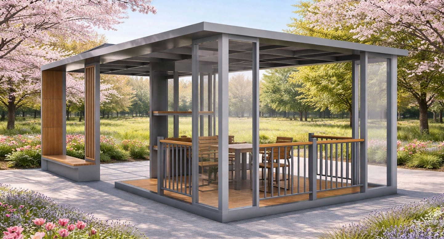 스톤 라운지 쉼터 (Stone Lounge Shelter)|GC-P-722A 제품목록으로 바로가기 자료 및 바로가기 나라장터 바로연결 도면 다운로드 시공사진 보러가기 기타 스톤 패널과 우드 조합으로 고급스럽고 안정적인 분위기를 구현한 쉼터로, 개방형 구조와 다양한 좌석 배치를 통해 공원·단지에서 편안한 휴식과 소통을 제공합니다. 제품명 스톤 라운지 쉼터 (Stone Lounge Shelter)|GC-P-722A 물품식별번호 25643627 규격 8,000 × 4,000 × 3,040(H) 재질 stl, galvanized, hard wood, polycarbonate, 강화유리, hpl 스톤 라운지 쉼터 (Stone Lounge Shelter)|GC-P-722A 물품식별번호 25643627 규격 8,000 × 4,000 × 3,040(H) 재질 stl, galvanized, hard wood, polycarbonate, 강화유리, hpl 기타 스톤 패널과 우드 조합으로 고급스럽고 안정적인 분위기를 구현한 쉼터로, 개방형 구조와 다양한 좌석 배치를 통해 공원·단지에서 편안한 휴식과 소통을 제공합니다. 자료 및 바로가기 나라장터 바로연결 도면 다운로드 시공사진 보러가기