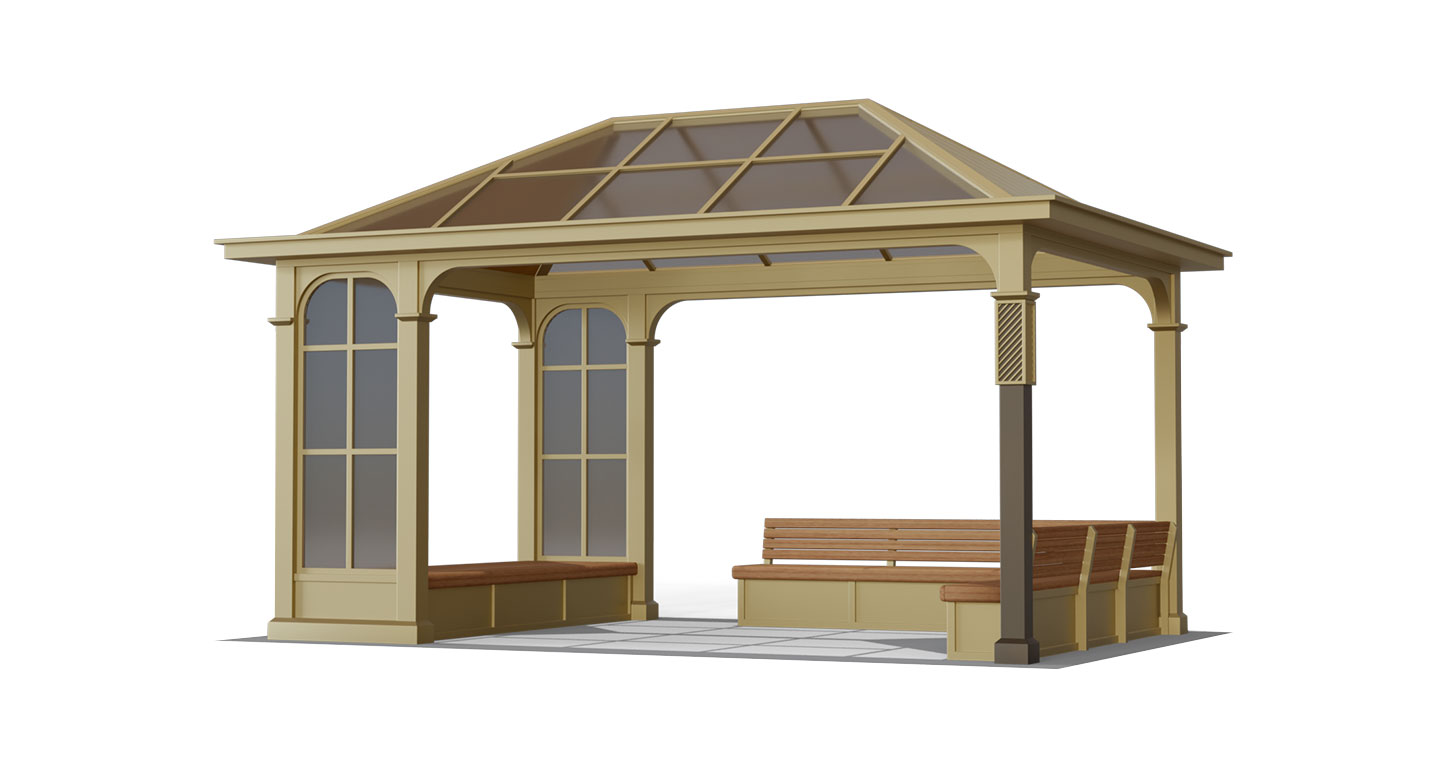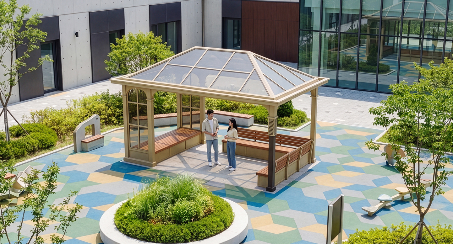 루체 와이드 파빌리온(Luce Wide Pavilion)|GC-P-2162 제품목록으로 바로가기 자료 및 바로가기 나라장터 바로연결 도면 다운로드 시공사진 보러가기 기타 가로로 확장된 대형 구조와 전면 아치형 창호, 스카이라이트 지붕을 갖춘 웅장한 쉼터입니다. 내부에는 분리형 벤치를 배치하여 다수의 인원이 동시에 휴식할 수 있으며, 전원주택의 대형 테라스나 리조트의 공용 라운지 공간을 고급스럽게 완성합니다. 제품명 루체 와이드 파빌리온(Luce Wide Pavilion)|GC-P-2162 물품식별번호 26054134 규격 6,000 x 4,000 x 3,700 재질 stl, hard wood, galvanized, polycarbonate 루체 와이드 파빌리온(Luce Wide Pavilion)|GC-P-2162 물품식별번호 26054134 규격 6,000 x 4,000 x 3,700 재질 stl, hard wood, galvanized, polycarbonate 기타 가로로 확장된 대형 구조와 전면 아치형 창호, 스카이라이트 지붕을 갖춘 웅장한 쉼터입니다. 내부에는 분리형 벤치를 배치하여 다수의 인원이 동시에 휴식할 수 있으며, 전원주택의 대형 테라스나 리조트의 공용 라운지 공간을 고급스럽게 완성합니다. 자료 및 바로가기 나라장터 바로연결 도면 다운로드 시공사진 보러가기