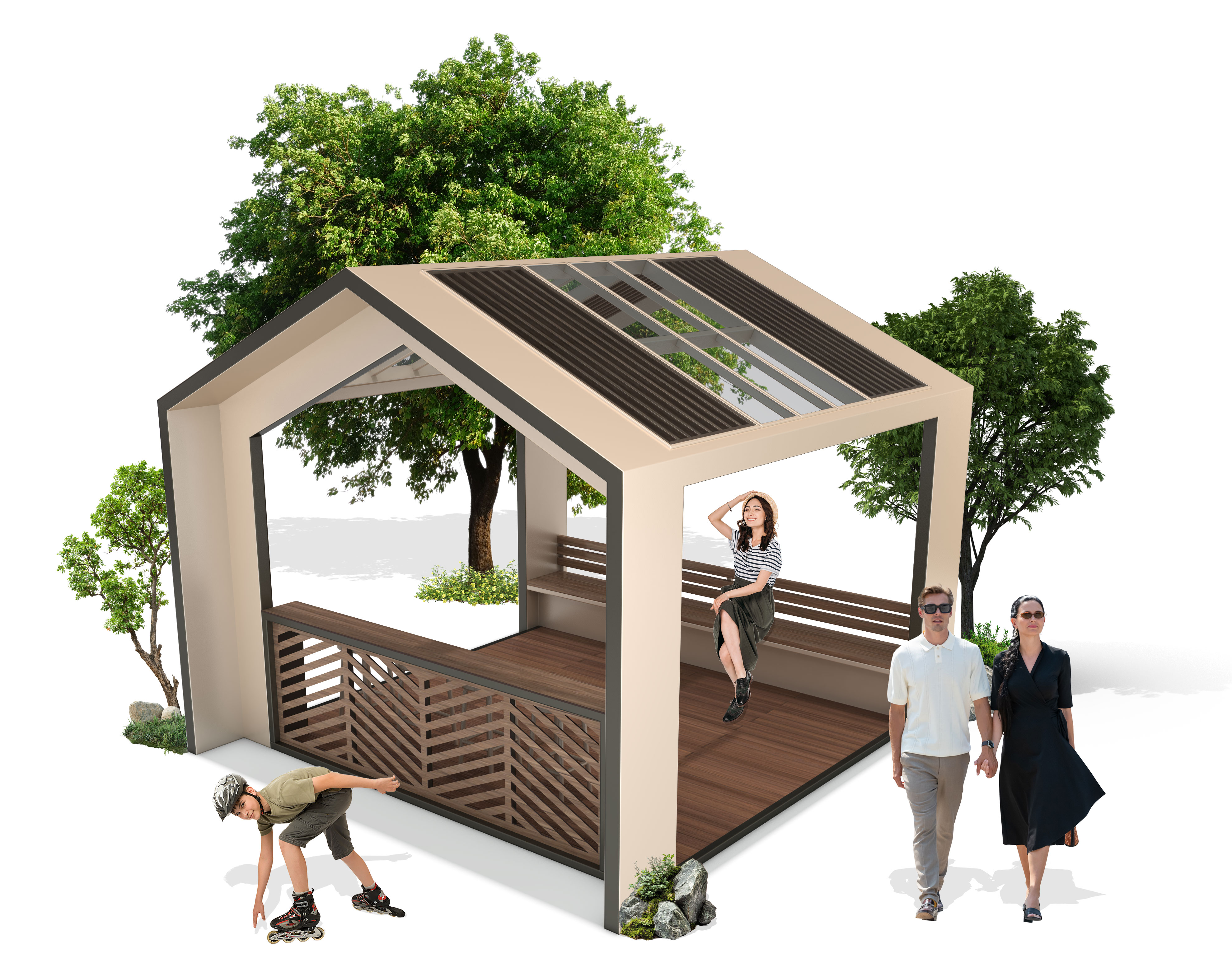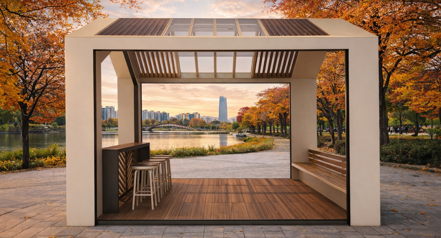 하우스쉼 파빌리온 (House Shim Pavilion)|GC-P-1199 제품목록으로 바로가기 자료 및 바로가기 나라장터 바로연결 도면 다운로드 시공사진 보러가기 기타 집 형태의 구조와 채광형 지붕이 편안한 휴식을 제공하며, 목재 데크와 개방형 벤치가 산책객과 주민의 일상 커뮤니티 활동을 자연스럽게 지원하는 공원형 쉼터입니다. 제품명 하우스쉼 파빌리온 (House Shim Pavilion)|GC-P-1199 물품식별번호 25565422 규격 3,800 × 4,000 × 3,334(H) 재질 stl, galvanized, polycarbonate, hard wood, hpl 하우스쉼 파빌리온 (House Shim Pavilion)|GC-P-1199 물품식별번호 25565422 규격 3,800 × 4,000 × 3,334(H) 재질 stl, galvanized, polycarbonate, hard wood, hpl 기타 집 형태의 구조와 채광형 지붕이 편안한 휴식을 제공하며, 목재 데크와 개방형 벤치가 산책객과 주민의 일상 커뮤니티 활동을 자연스럽게 지원하는 공원형 쉼터입니다. 자료 및 바로가기 나라장터 바로연결 도면 다운로드 시공사진 보러가기