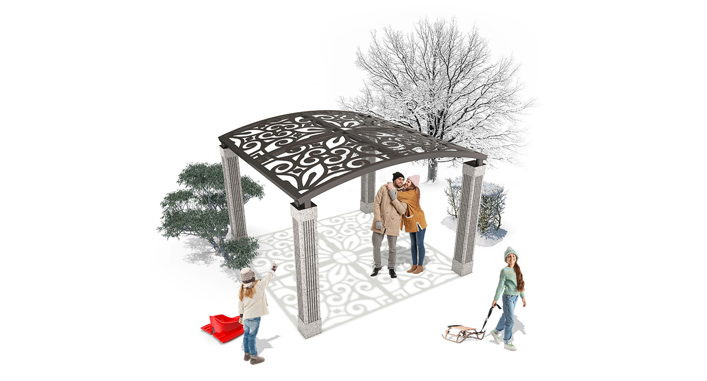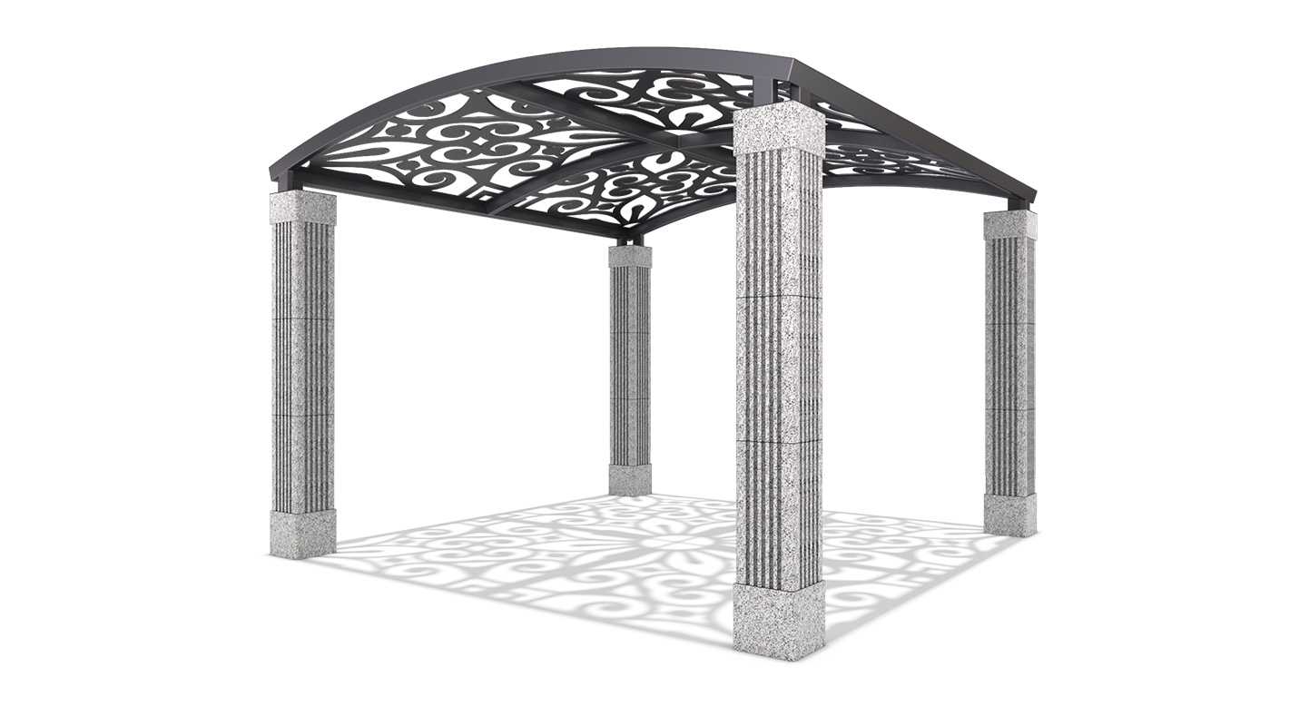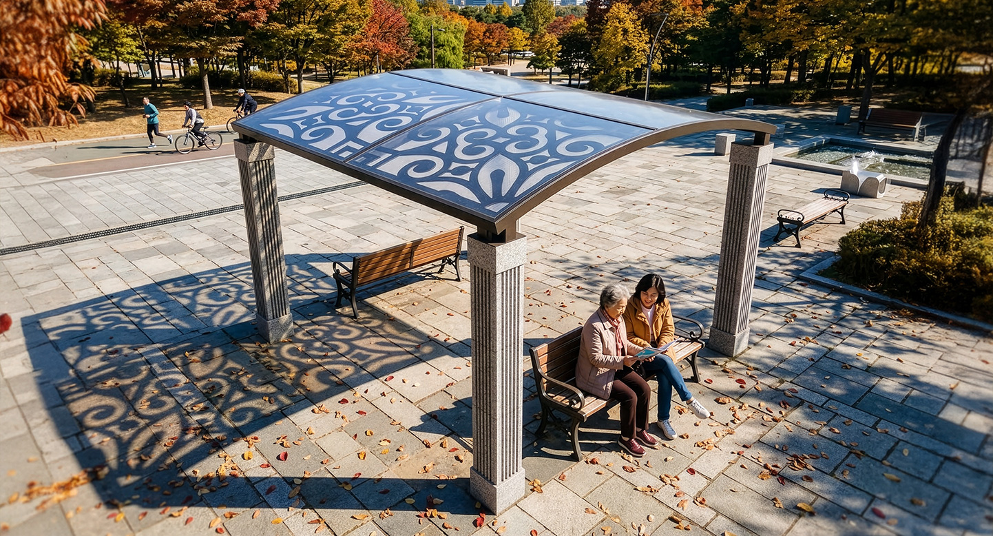 패턴아치 퍼걸러(Pattern Arch Pergola)|GC-P-1179 제품목록으로 바로가기 자료 및 바로가기 나라장터 바로연결 도면 다운로드 시공사진 보러가기 기타 아치형 패턴 지붕이 만드는 아름다운 그림자와 조형미로 공간의 품격을 높여주는 퍼걸러입니다. 제품명 패턴아치 퍼걸러(Pattern Arch Pergola)|GC-P-1179 물품식별번호 25540484 규격 4,000 × 4,000 × 2,950(H) 재질 stl, galvanized, polycarbonate, 화강석 패턴아치 퍼걸러(Pattern Arch Pergola)|GC-P-1179 물품식별번호 25540484 규격 4,000 × 4,000 × 2,950(H) 재질 stl, galvanized, polycarbonate, 화강석 기타 아치형 패턴 지붕이 만드는 아름다운 그림자와 조형미로 공간의 품격을 높여주는 퍼걸러입니다. 자료 및 바로가기 나라장터 바로연결 도면 다운로드 시공사진 보러가기
