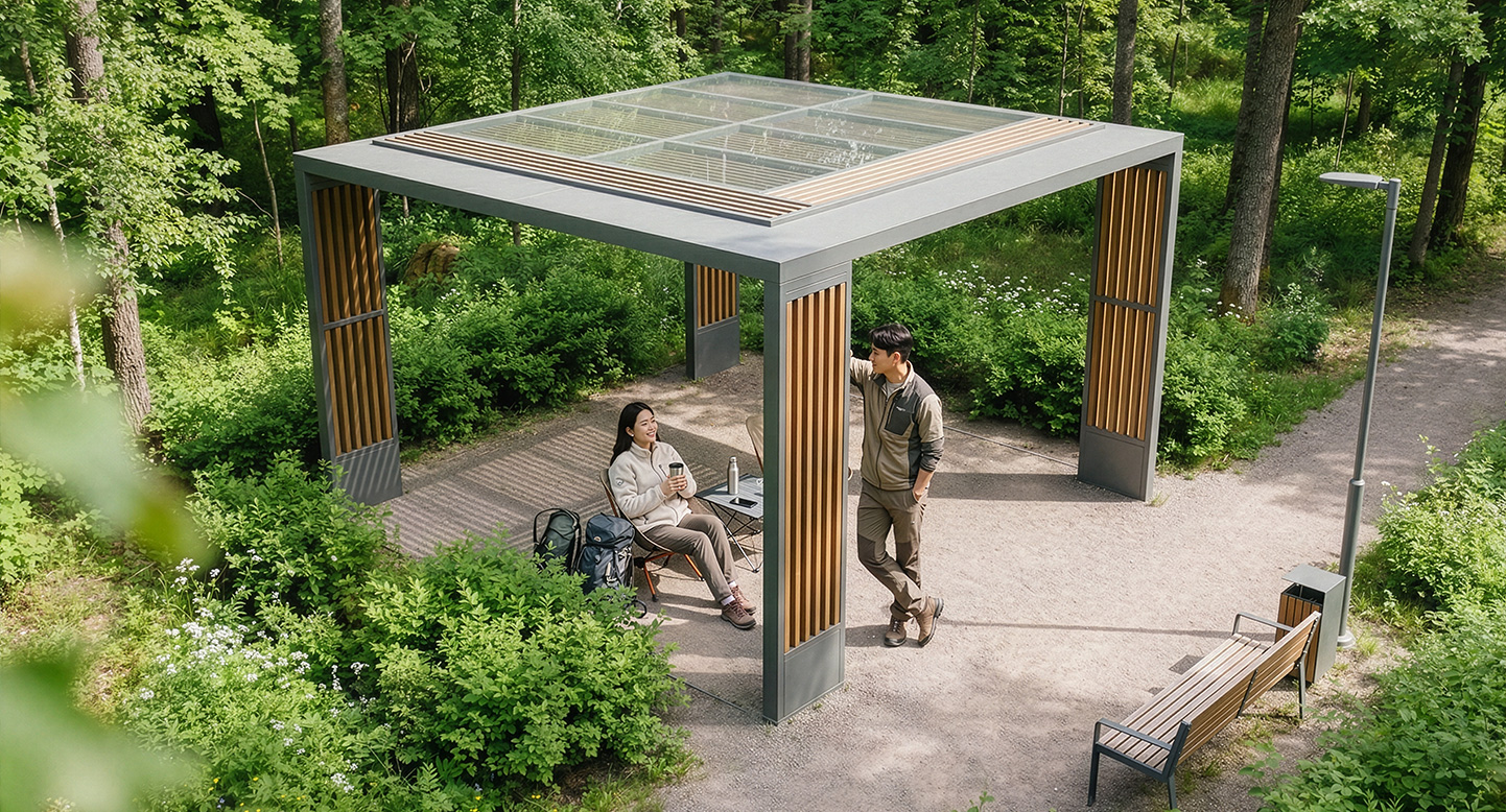 모던 우드큐브 퍼걸러(Modern Wood Cube Pergola)|GC-P-111B 제품목록으로 바로가기 자료 및 바로가기 나라장터 바로연결 도면 다운로드 시공사진 보러가기 기타 모던한 사각 프레임에 우드 슬랫을 더해 단지·공원 어디서나 고급스러운 분위기를 연출하는 퍼걸러입니다. 제품명 모던 우드큐브 퍼걸러(Modern Wood Cube Pergola)|GC-P-111B 물품식별번호 25651487 규격 4,000 × 4,000 × 2,600(H) 재질 stl, galvanized, hard wood, polycarbonate 모던 우드큐브 퍼걸러(Modern Wood Cube Pergola)|GC-P-111B 물품식별번호 25651487 규격 4,000 × 4,000 × 2,600(H) 재질 stl, galvanized, hard wood, polycarbonate 기타 모던한 사각 프레임에 우드 슬랫을 더해 단지·공원 어디서나 고급스러운 분위기를 연출하는 퍼걸러입니다. 자료 및 바로가기 나라장터 바로연결 도면 다운로드 시공사진 보러가기