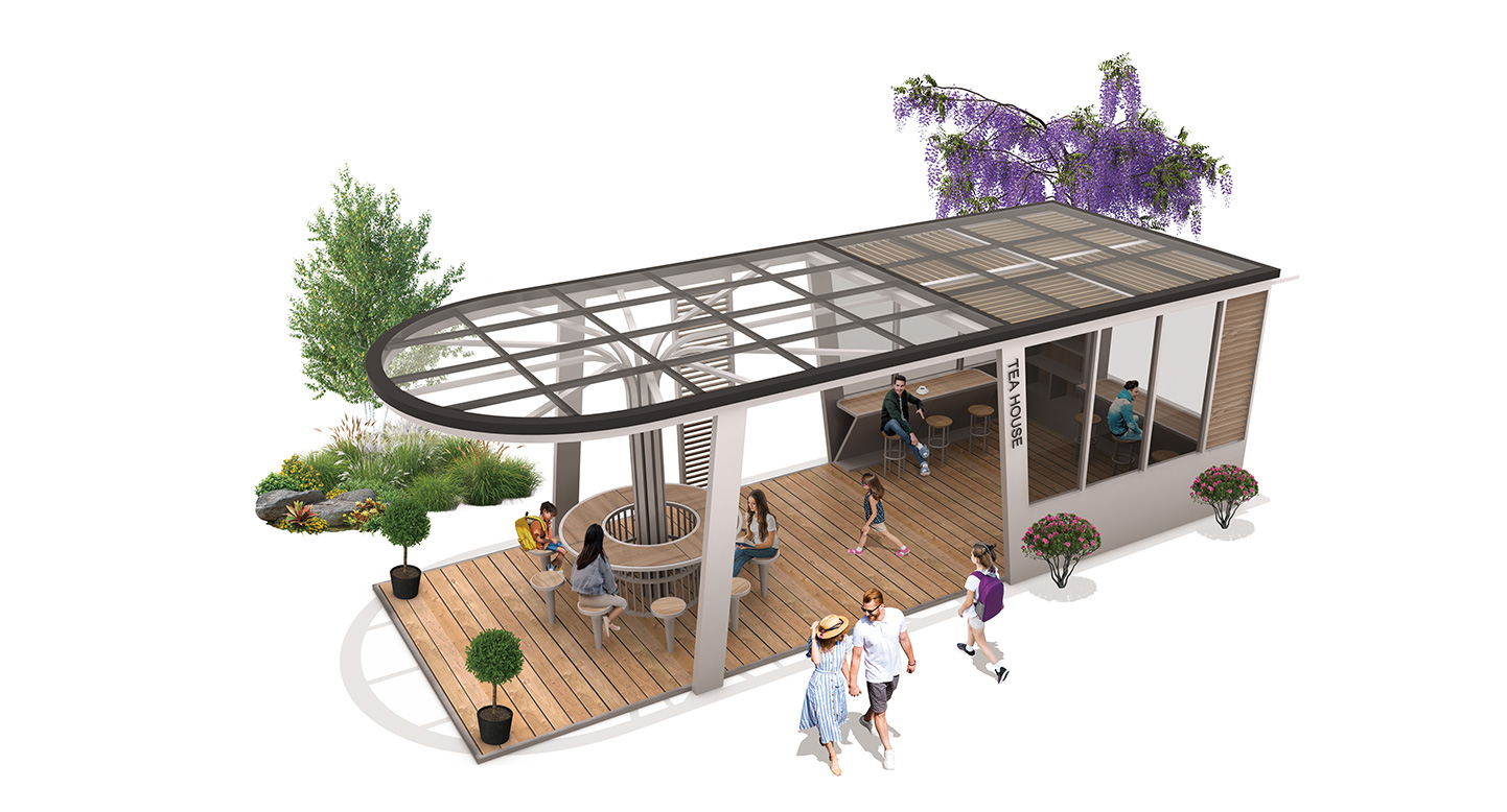 쉐이드앤라이트 (Shade & Light) |GC-TH-008 제품목록으로 바로가기 자료 및 바로가기 나라장터 바로연결 도면 다운로드 시공사진 보러가기 기타 개방된 빛의 공간과 조용한 그늘 공간이 공존하는 티하우스. 유리 루프와 우드 루버 지붕이 자연스럽게 대비되어 다양한 휴식을 제공합니다. 제품명 쉐이드앤라이트 (Shade & Light) |GC-TH-008 물품식별번호 25544831 규격 10,500 × 4,000 × 3,150(H) 재질 stl, glavannized, polycarbonate, hard wood, hpl, 강화유리 쉐이드앤라이트 (Shade & Light) |GC-TH-008 물품식별번호 25544831 규격 10,500 × 4,000 × 3,150(H) 재질 stl, glavannized, polycarbonate, hard wood, hpl, 강화유리 기타 개방된 빛의 공간과 조용한 그늘 공간이 공존하는 티하우스. 유리 루프와 우드 루버 지붕이 자연스럽게 대비되어 다양한 휴식을 제공합니다. 자료 및 바로가기 나라장터 바로연결 도면 다운로드 시공사진 보러가기