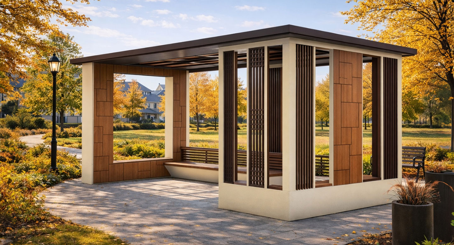 헤리티지 쉼터 퍼걸러 (Heritage Shelter Pergola)|GC-P-790 제품목록으로 바로가기 자료 및 바로가기 나라장터 바로연결 도면 다운로드 시공사진 보러가기 기타 수직 루버와 목재 패널을 조합해 전통 감성과 현대적 조형미를 담았으며, 자연광이 부드럽게 스며드는 구조로 단지·공원·캠퍼스 어디서나 편안한 휴식을 제공합니다. 제품명 헤리티지 쉼터 퍼걸러 (Heritage Shelter Pergola)|GC-P-790 물품식별번호 25010280 규격 8,000 × 4,000 × 3,300(H) 재질 stl, galvanized, polycarbonate, hard wood, hpl 헤리티지 쉼터 퍼걸러 (Heritage Shelter Pergola)|GC-P-790 물품식별번호 25010280 규격 8,000 × 4,000 × 3,300(H) 재질 stl, galvanized, polycarbonate, hard wood, hpl 기타 수직 루버와 목재 패널을 조합해 전통 감성과 현대적 조형미를 담았으며, 자연광이 부드럽게 스며드는 구조로 단지·공원·캠퍼스 어디서나 편안한 휴식을 제공합니다. 자료 및 바로가기 나라장터 바로연결 도면 다운로드 시공사진 보러가기