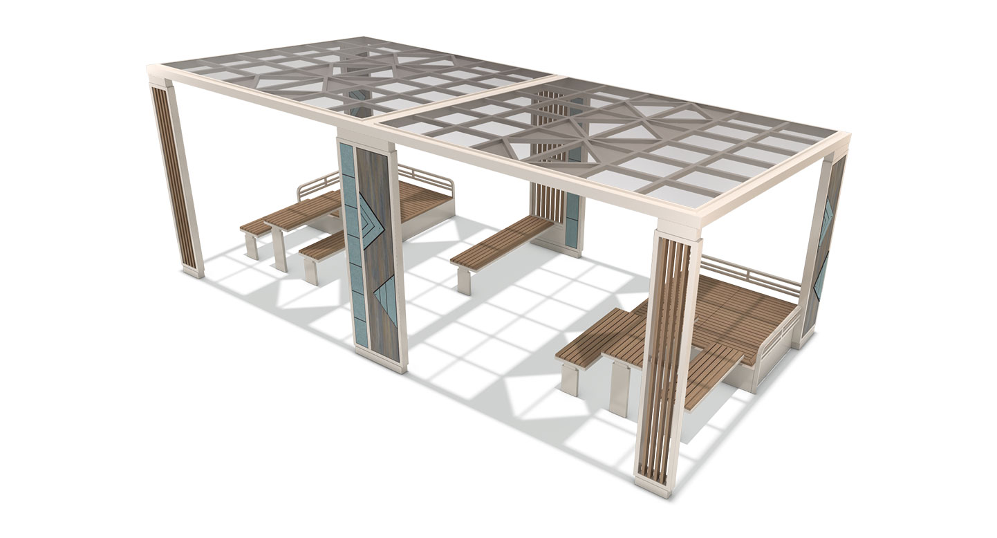 에코모듈 파빌리온 (Eco Module Pavilion)|GC-P-1739 제품목록으로 바로가기 자료 및 바로가기 나라장터 바로연결 도면 다운로드 시공사진 보러가기 기타 모듈형 구조와 우드 벤치를 결합한 커뮤니티 쉼터로, 개방형 루프를 통해 자연 채광을 살리며 공원·캠퍼스·단지에서 편안한 휴식과 소통 공간을 제공합니다. 제품명 에코모듈 파빌리온 (Eco Module Pavilion)|GC-P-1739 물품식별번호 25651682 규격 7,600 × 3,800 × 2,865(H) 재질 stl, galvanized, polycarbonate, hard wood, hpl 에코모듈 파빌리온 (Eco Module Pavilion)|GC-P-1739 물품식별번호 25651682 규격 7,600 × 3,800 × 2,865(H) 재질 stl, galvanized, polycarbonate, hard wood, hpl 기타 모듈형 구조와 우드 벤치를 결합한 커뮤니티 쉼터로, 개방형 루프를 통해 자연 채광을 살리며 공원·캠퍼스·단지에서 편안한 휴식과 소통 공간을 제공합니다. 자료 및 바로가기 나라장터 바로연결 도면 다운로드 시공사진 보러가기