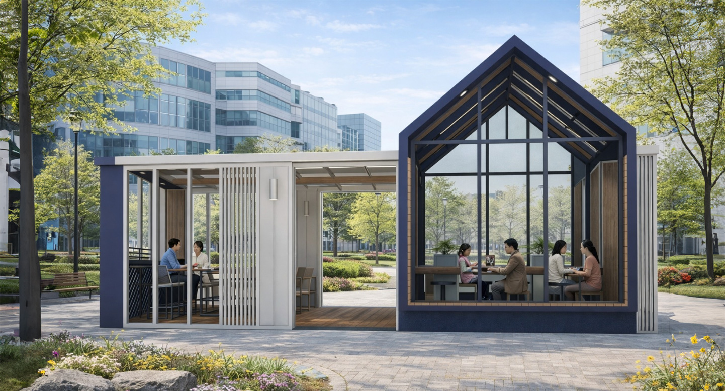 솔리안하우스 (Solian House)|GCP-741A 제품목록으로 바로가기 자료 및 바로가기 나라장터 바로연결 도면 다운로드 시공사진 보러가기 기타 박공지붕과 유리 구조가 결합된 온실형 디자인으로, 자연 채광을 최대한 끌어들이며 내부에는 식물과 어우러진 다양한 형태의 휴식 공간이 마련되어 있습니다. 제품명 솔리안하우스 (Solian House)|GCP-741A 물품식별번호 25651472 규격 10,000 × 5,000 × 4,075(H) 재질 stl, galvanized, polycarbonate, hard wood, 강화유리 솔리안하우스 (Solian House)|GCP-741A 물품식별번호 25651472 규격 10,000 × 5,000 × 4,075(H) 재질 stl, galvanized, polycarbonate, hard wood, 강화유리 기타 박공지붕과 유리 구조가 결합된 온실형 디자인으로, 자연 채광을 최대한 끌어들이며 내부에는 식물과 어우러진 다양한 형태의 휴식 공간이 마련되어 있습니다. 자료 및 바로가기 나라장터 바로연결 도면 다운로드 시공사진 보러가기