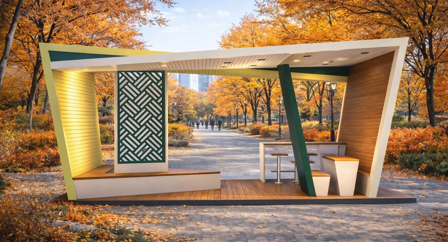 스큐 라운지 (Skew Lounge)|GC-P-767 제품목록으로 바로가기 자료 및 바로가기 나라장터 바로연결 도면 다운로드 시공사진 보러가기 기타 좌우에서 교차하며 올라가는 사선 지붕과 기둥이 유기적인 균형을 이루며, 전면과 후면이 완전히 열려 있어 개방감을 극대화합니다. 내부에는 다양한 형태의 벤치가 조화롭게 배치되어 있습니다. 제품명 스큐 라운지 (Skew Lounge)|GC-P-767 물품식별번호 25010256 규격 10,000 × 4,000 × 3,500(H) 재질 stl, galvanized, polycarbonate, hard wood, hpl 스큐 라운지 (Skew Lounge)|GC-P-767 물품식별번호 25010256 규격 10,000 × 4,000 × 3,500(H) 재질 stl, galvanized, polycarbonate, hard wood, hpl 기타 좌우에서 교차하며 올라가는 사선 지붕과 기둥이 유기적인 균형을 이루며, 전면과 후면이 완전히 열려 있어 개방감을 극대화합니다. 내부에는 다양한 형태의 벤치가 조화롭게 배치되어 있습니다. 자료 및 바로가기 나라장터 바로연결 도면 다운로드 시공사진 보러가기