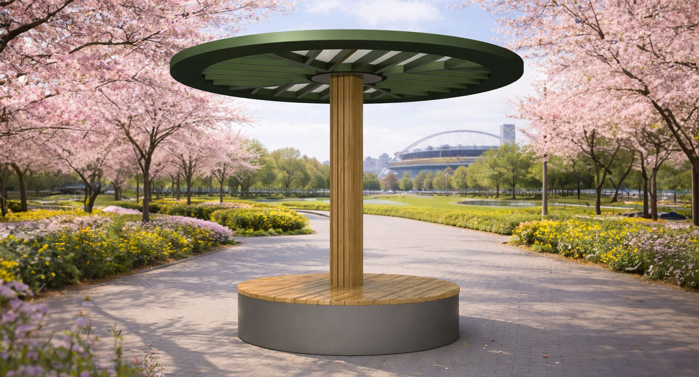 그린라운드 파고라 (Green Round Pergola)|GC-P-312 제품목록으로 바로가기 자료 및 바로가기 나라장터 바로연결 도면 다운로드 시공사진 보러가기 기타 자연을 연상시키는 그린 톤과 우드 기둥을 조합해 부드럽고 안정적인 쉼터 분위기를 구현했습니다. 간결한 방사형 차양 구조로 은은한 햇빛을 조절하며 소형 휴식 공간으로 활용도를 높였습니다. 제품명 그린라운드 파고라 (Green Round Pergola)|GC-P-312 물품식별번호 24752379 규격 3,400 × 3,400 × 2,700(H) 재질 stl, galvanized, polycarbonate, hard wood 그린라운드 파고라 (Green Round Pergola)|GC-P-312 물품식별번호 24752379 규격 3,400 × 3,400 × 2,700(H) 재질 stl, galvanized, polycarbonate, hard wood 기타 자연을 연상시키는 그린 톤과 우드 기둥을 조합해 부드럽고 안정적인 쉼터 분위기를 구현했습니다. 간결한 방사형 차양 구조로 은은한 햇빛을 조절하며 소형 휴식 공간으로 활용도를 높였습니다. 자료 및 바로가기 나라장터 바로연결 도면 다운로드 시공사진 보러가기
