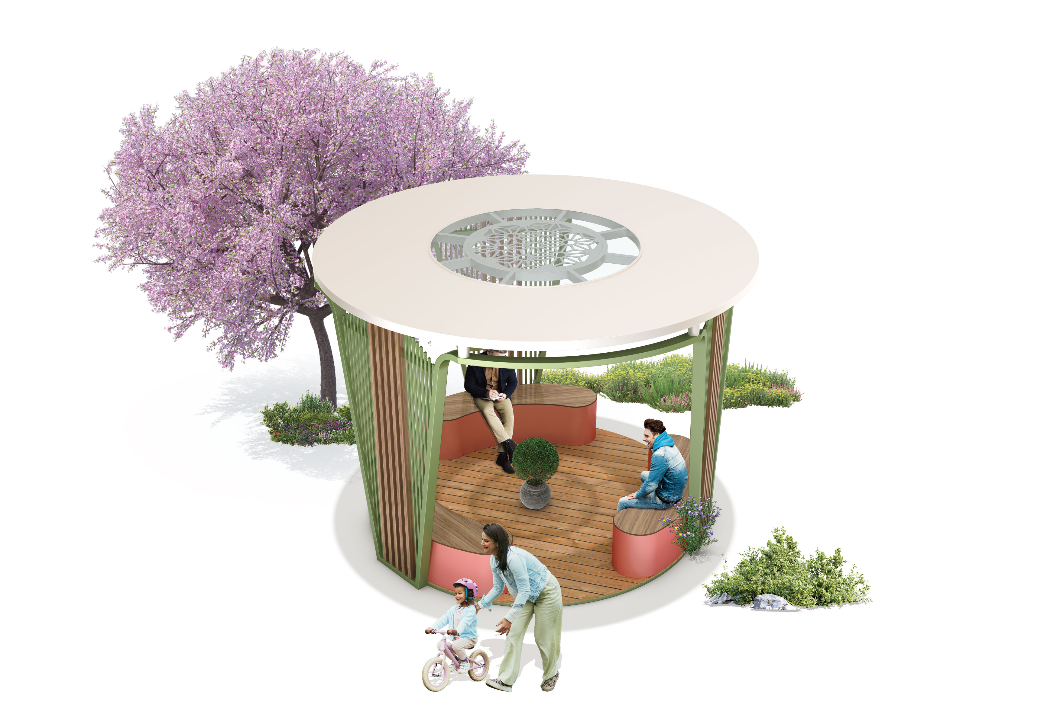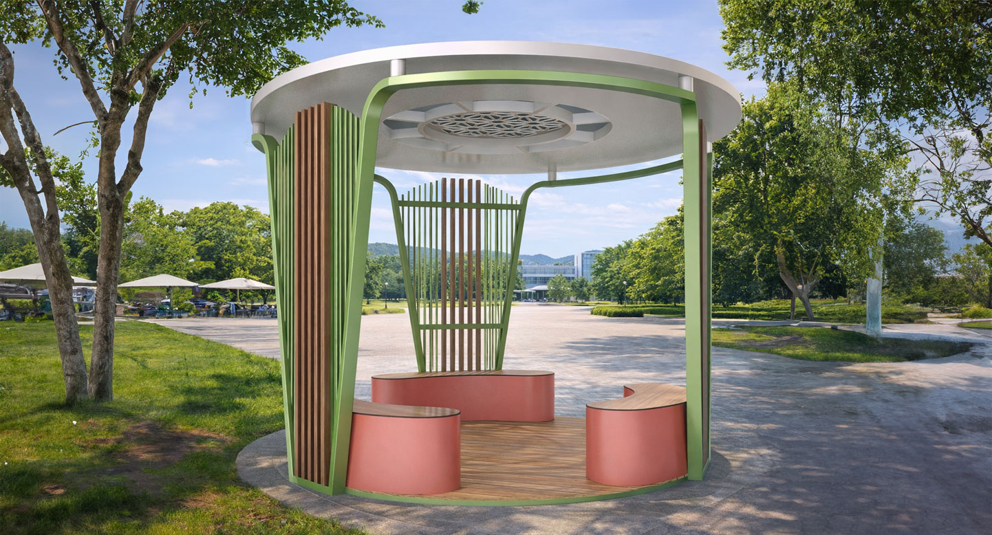플로럴 커브 쉼터 (Floral Curve Shelter)|GC-P-310 제품목록으로 바로가기 자료 및 바로가기 나라장터 바로연결 도면 다운로드 시공사진 보러가기 기타 곡선 벤치와 파스텔 컬러를 조합해 부드럽고 친근한 분위기를 연출한 쉼터입니다. 상부의 패턴 창은 은은한 빛을 투과시켜 자연과 어우러진 아늑한 휴식 공간을 제공합니다. 제품명 플로럴 커브 쉼터 (Floral Curve Shelter)|GC-P-310 물품식별번호 24718186 규격 3,800 × 3,800 × 2,675(H) 재질 stl, galvanized, polycarbonate, hard wood 플로럴 커브 쉼터 (Floral Curve Shelter)|GC-P-310 물품식별번호 24718186 규격 3,800 × 3,800 × 2,675(H) 재질 stl, galvanized, polycarbonate, hard wood 기타 곡선 벤치와 파스텔 컬러를 조합해 부드럽고 친근한 분위기를 연출한 쉼터입니다. 상부의 패턴 창은 은은한 빛을 투과시켜 자연과 어우러진 아늑한 휴식 공간을 제공합니다. 자료 및 바로가기 나라장터 바로연결 도면 다운로드 시공사진 보러가기
