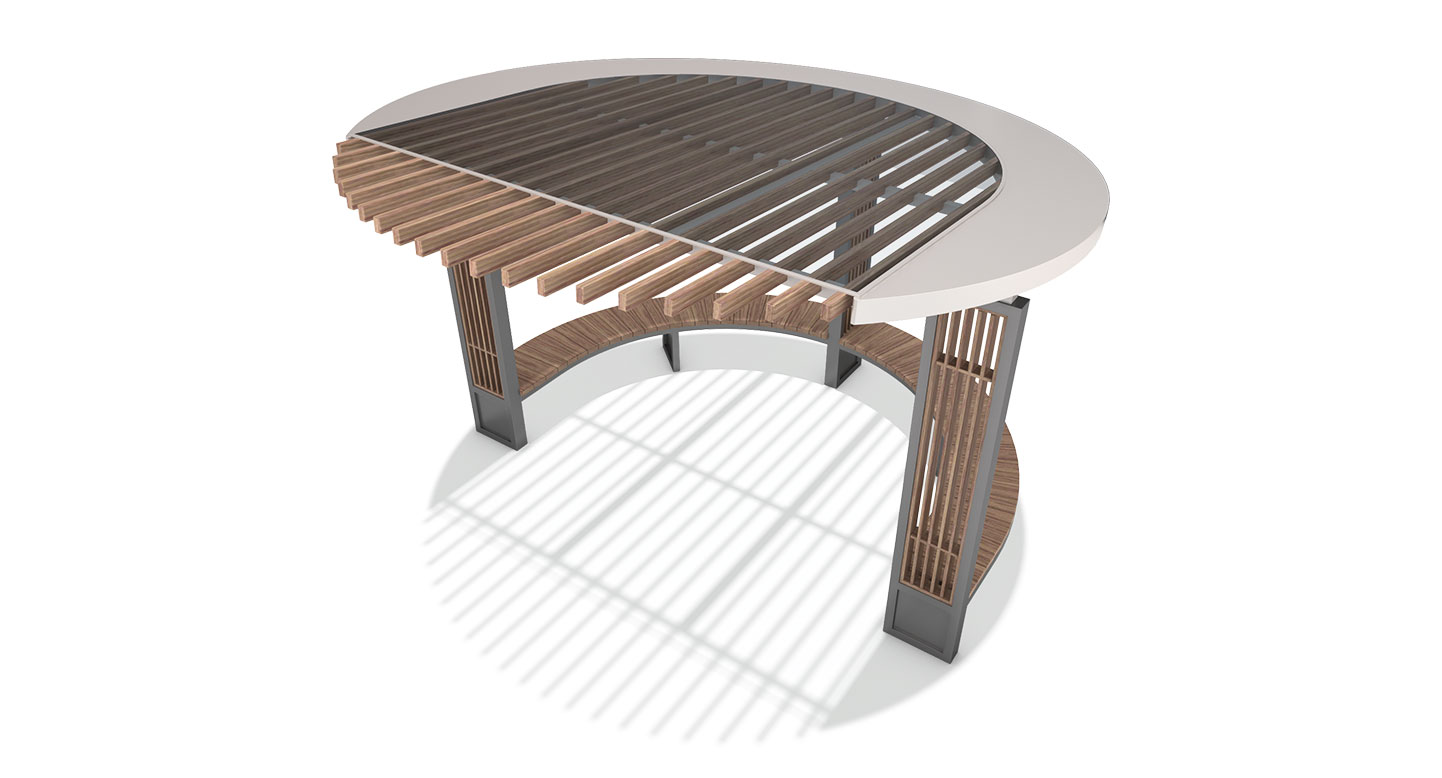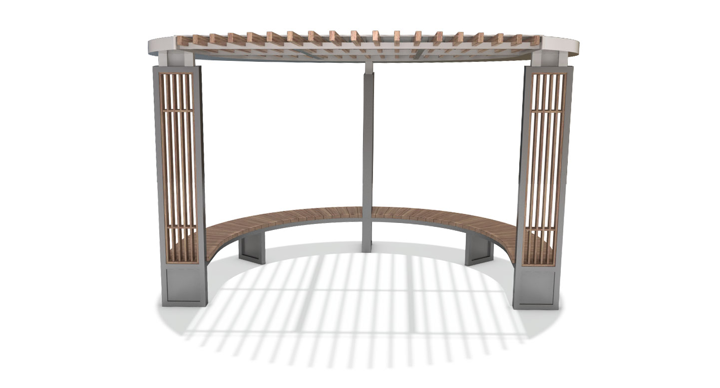 슬릿 아치 퍼걸러 (Slit Arch Pergola)|GC-P-306 제품목록으로 바로가기 자료 및 바로가기 나라장터 바로연결 도면 다운로드 시공사진 보러가기 기타 부드러운 아치 구조와 규칙적인 슬릿 쉐이딩을 결합해 자연스러운 빛 패턴을 만드는 쉼터입니다. 곡선 벤치와 개방형 구조가 어우러져 공원·단지에 편안한 흐름과 휴식 분위기를 제공합니다. 제품명 슬릿 아치 퍼걸러 (Slit Arch Pergola)|GC-P-306 물품식별번호 24099095 규격 3,800 × 3,792 × 2,530(H) 재질 stl, galvanized, polycarbonate, hard wood 슬릿 아치 퍼걸러 (Slit Arch Pergola)|GC-P-306 물품식별번호 24099095 규격 3,800 × 3,792 × 2,530(H) 재질 stl, galvanized, polycarbonate, hard wood 기타 부드러운 아치 구조와 규칙적인 슬릿 쉐이딩을 결합해 자연스러운 빛 패턴을 만드는 쉼터입니다. 곡선 벤치와 개방형 구조가 어우러져 공원·단지에 편안한 흐름과 휴식 분위기를 제공합니다. 자료 및 바로가기 나라장터 바로연결 도면 다운로드 시공사진 보러가기