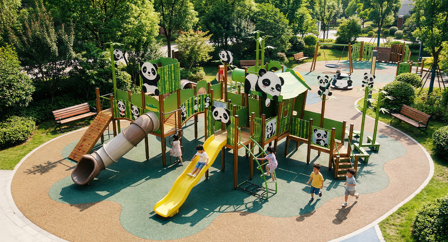 판다 포레스트 어드벤처 (Panda Forest Adventure)|GGPG-011 제품목록으로 바로가기 자료 및 바로가기 나라장터 바로연결 도면 다운로드 시공사진 보러가기 기타 대나무 숲과 판다 캐릭터를 테마로, 아이들이 자연 속을 탐험하듯 이동하며 놀이하도록 디자인 하였습니다. 연결된 데크와 슬라이드, 오르기 요소를 통해 활동의 흐름이 끊기지 않도록 구성해 신체 활동과 상상 놀이가 함께 확장되도록 의도하였습니다. 제품명 판다 포레스트 어드벤처 (Panda Forest Adventure)|GGPG-011 물품식별번호 25438419|안전인증번호:CA023H10019-3022 규격 16,867 x 11,510 x 4,544(H), 15종 재질 stl, hpl, pe, hard wood 판다 포레스트 어드벤처 (Panda Forest Adventure)|GGPG-011 물품식별번호 25438419|안전인증번호:CA023H10019-3022 규격 16,867 x 11,510 x 4,544(H), 15종 재질 stl, hpl, pe, hard wood 기타 대나무 숲과 판다 캐릭터를 테마로, 아이들이 자연 속을 탐험하듯 이동하며 놀이하도록 디자인 하였습니다. 연결된 데크와 슬라이드, 오르기 요소를 통해 활동의 흐름이 끊기지 않도록 구성해 신체 활동과 상상 놀이가 함께 확장되도록 의도하였습니다. 자료 및 바로가기 나라장터 바로연결 도면 다운로드 시공사진 보러가기