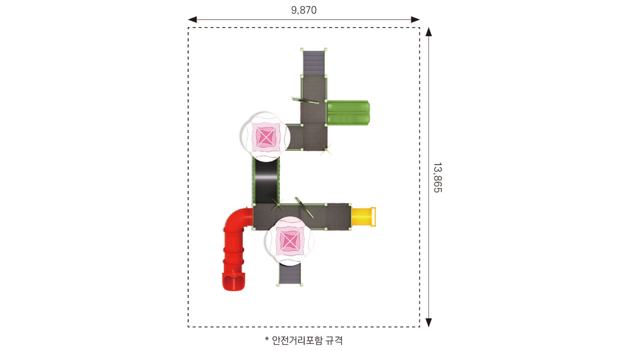 블로썸 브릿지 플레이가든(Blossom Bridge Play Garden)|FNK-041-4A 제품목록으로 바로가기 자료 및 바로가기 나라장터 바로연결 도면 다운로드 시공사진 보러가기 기타 꽃잎 지붕의 데크를 브리지로 연결하고 슬라이드와 오르기 요소를 배치해 아이들이 이동하며 다양한 놀이 동작을 자연스럽게 이어갈 수 있도록 구성한 조합 놀이시설이다. 제품명 블로썸 브릿지 플레이가든(Blossom Bridge Play Garden)|FNK-041-4A 물품식별번호 25988173|안전인증번호:CA023H10019-3014 규격 10,365 × 6,370 × 4,440(H), 5종 재질 stl, hpl, pe, hard wood 블로썸 브릿지 플레이가든(Blossom Bridge Play Garden)|FNK-041-4A 물품식별번호 25988173|안전인증번호:CA023H10019-3014 규격 10,365 × 6,370 × 4,440(H), 5종 재질 stl, hpl, pe, hard wood 기타 꽃잎 지붕의 데크를 브리지로 연결하고 슬라이드와 오르기 요소를 배치해 아이들이 이동하며 다양한 놀이 동작을 자연스럽게 이어갈 수 있도록 구성한 조합 놀이시설이다. 자료 및 바로가기 나라장터 바로연결 도면 다운로드 시공사진 보러가기