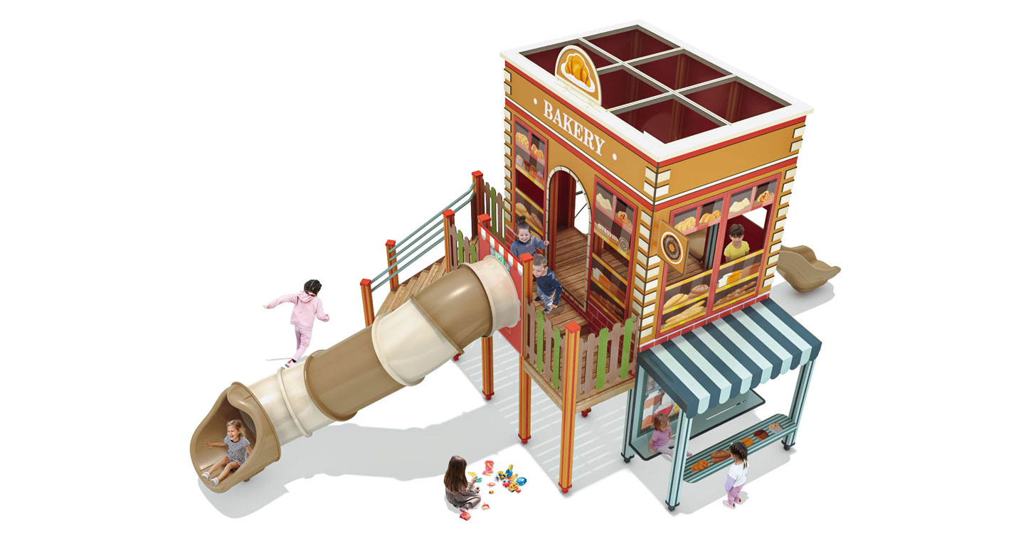 베이커리 스트리트 플레이하우스(Bakery Street Playhouse)|FNK-042A-3 제품목록으로 바로가기 자료 및 바로가기 나라장터 바로연결 도면 다운로드 시공사진 보러가기 기타 빵집 외관을 그대로 구현한 상점형 구조에 데크와 터널형 미끄럼틀을 결합해 아이들이 역할 놀이와 오르기·이동 놀이를 자연스럽게 함께 즐길 수 있도록 구성한 조합 놀이시설이다. 제품명 베이커리 스트리트 플레이하우스(Bakery Street Playhouse)|FNK-042A-3 물품식별번호 25988181|안전인증번호:CA023H10019-3018 규격 5,478 × 9,400 × 4,460(H), 4종 재질 stl, hpl, pe, hard wood 베이커리 스트리트 플레이하우스(Bakery Street Playhouse)|FNK-042A-3 물품식별번호 25988181|안전인증번호:CA023H10019-3018 규격 5,478 × 9,400 × 4,460(H), 4종 재질 stl, hpl, pe, hard wood 기타 빵집 외관을 그대로 구현한 상점형 구조에 데크와 터널형 미끄럼틀을 결합해 아이들이 역할 놀이와 오르기·이동 놀이를 자연스럽게 함께 즐길 수 있도록 구성한 조합 놀이시설이다. 자료 및 바로가기 나라장터 바로연결 도면 다운로드 시공사진 보러가기
