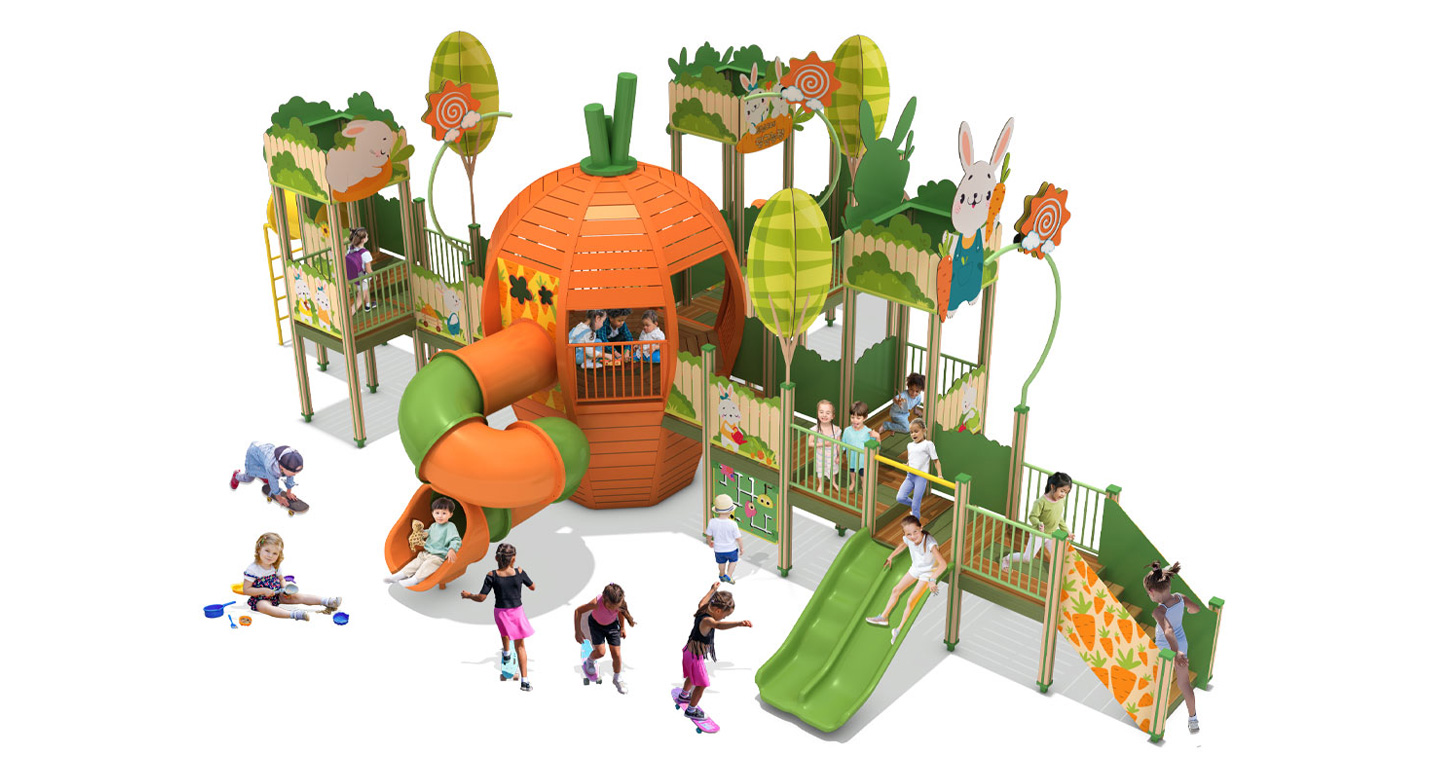 캐럿 포레스트 플레이빌리지(Carrot Forest Play Village)|GGPG-014 제품목록으로 바로가기 자료 및 바로가기 나라장터 바로연결 도면 다운로드 시공사진 보러가기 기타 기어와 공장 구조에서 착안해 타워·브릿지·터널 슬라이드를 유기적으로 연결한 대형 탐험 놀이시설로, 다양한 레벨 변화와 반복 동선을 통해 아이들의 도전 욕구와 신체 활동, 상상 놀이를 자연스럽게 이끌어냅니다. 제품명 캐럿 포레스트 플레이빌리지(Carrot Forest Play Village)|GGPG-014 물품식별번호 25436914|안전인증번호:CA023H10019-3014 규격 12,728 x 9,532 x 4,920(H), 7종 재질 stl, hpl, pe, hard wood 캐럿 포레스트 플레이빌리지(Carrot Forest Play Village)|GGPG-014 물품식별번호 25436914|안전인증번호:CA023H10019-3014 규격 12,728 x 9,532 x 4,920(H), 7종 재질 stl, hpl, pe, hard wood 기타 기어와 공장 구조에서 착안해 타워·브릿지·터널 슬라이드를 유기적으로 연결한 대형 탐험 놀이시설로, 다양한 레벨 변화와 반복 동선을 통해 아이들의 도전 욕구와 신체 활동, 상상 놀이를 자연스럽게 이끌어냅니다. 자료 및 바로가기 나라장터 바로연결 도면 다운로드 시공사진 보러가기
