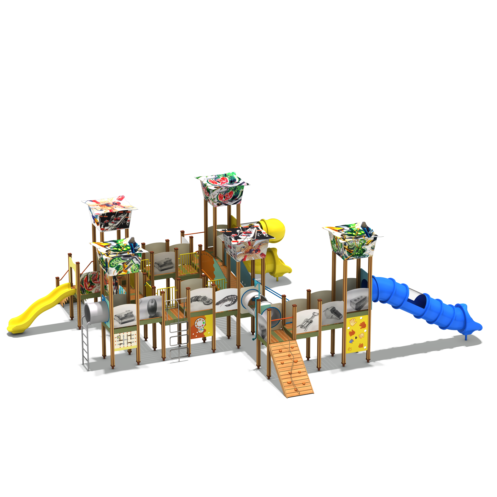 아트 큐브 플레이빌리지 (Art Cube Play Village)|GGPG-005A 제품목록으로 바로가기 자료 및 바로가기 나라장터 바로연결 도면 다운로드 시공사진 보러가기 기타 큐브 형태의 타워와 예술적 그래픽 패널을 모티브로 한 창의 놀이 마을로, 다양한 높이의 데크·터널·슬라이드를 연결해 아이들이 오르내리며 탐험과 신체활동은 물론 상상력과 표현력을 함께 확장하는 아트·에듀형 조합놀이시설입니다. 제품명 아트 큐브 플레이빌리지 (Art Cube Play Village)|GGPG-005A 물품식별번호 25988115|안전인증번호:CA023H10019-3020 규격 14,118 × 10,430 × 4,317(H), 21종 재질 stl, hpl, pe, hard wood 아트 큐브 플레이빌리지 (Art Cube Play Village)|GGPG-005A 물품식별번호 25988115|안전인증번호:CA023H10019-3020 규격 14,118 × 10,430 × 4,317(H), 21종 재질 stl, hpl, pe, hard wood 기타 큐브 형태의 타워와 예술적 그래픽 패널을 모티브로 한 창의 놀이 마을로, 다양한 높이의 데크·터널·슬라이드를 연결해 아이들이 오르내리며 탐험과 신체활동은 물론 상상력과 표현력을 함께 확장하는 아트·에듀형 조합놀이시설입니다. 자료 및 바로가기 나라장터 바로연결 도면 다운로드 시공사진 보러가기