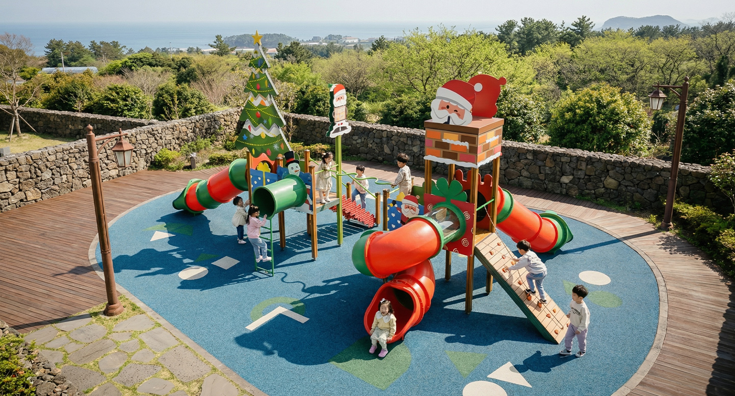 산타 스노우 플레이 패스 (Santa Snow Play Path)|GGPG-012-5 제품목록으로 바로가기 자료 및 바로가기 나라장터 바로연결 도면 다운로드 시공사진 보러가기 기타 크리스마스 트리와 산타 타워를 중심으로 놀이 요소를 길처럼 이어 하나의 겨울 놀이 동선을 만들도록 디자인 하였습니다. 오르기·건너기·미끄럼 놀이가 자연스럽게 연결되어 아이들이 눈 내리는 산타 마을을 여행하듯 즐길 수 있는 테마형 놀이 공간입니다. 제품명 산타 스노우 플레이 패스 (Santa Snow Play Path)|GGPG-012-5 물품식별번호 25438413|안전인증번호:CA023H10019-3022 규격 11,042 x 7,389 x 5,340(H), 7종 재질 stl, hpl, pe, hard wood 산타 스노우 플레이 패스 (Santa Snow Play Path)|GGPG-012-5 물품식별번호 25438413|안전인증번호:CA023H10019-3022 규격 11,042 x 7,389 x 5,340(H), 7종 재질 stl, hpl, pe, hard wood 기타 크리스마스 트리와 산타 타워를 중심으로 놀이 요소를 길처럼 이어 하나의 겨울 놀이 동선을 만들도록 디자인 하였습니다. 오르기·건너기·미끄럼 놀이가 자연스럽게 연결되어 아이들이 눈 내리는 산타 마을을 여행하듯 즐길 수 있는 테마형 놀이 공간입니다. 자료 및 바로가기 나라장터 바로연결 도면 다운로드 시공사진 보러가기
