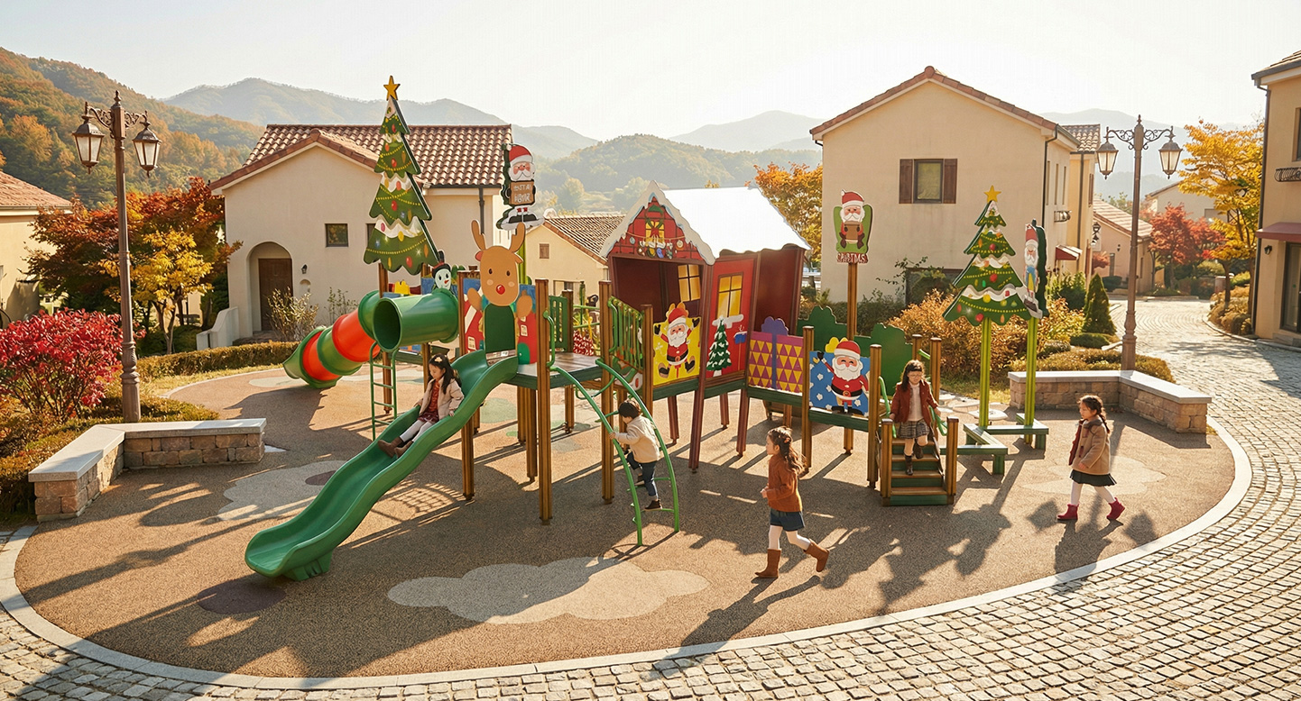 크리스마스 스토리 플레이 빌리지 (Christmas Story Play Village)|GGPG-012-3 제품목록으로 바로가기 자료 및 바로가기 나라장터 바로연결 도면 다운로드 시공사진 보러가기 기타 산타의 집과 트리, 선물 요소를 하나의 이야기 동선으로 엮은 크리스마스 테마 놀이터입니다. 놀이기구를 이동하며 자연스럽게 이야기가 이어지도록 구성해 아이들이 상상 속 겨울 마을을 탐험하는 경험을 할 수 있도록 디자인 하였습니다. 제품명 크리스마스 스토리 플레이 빌리지 (Christmas Story Play Village)|GGPG-012-3 물품식별번호 25438411|안전인증번호:CA023H10019-3022 규격 11,125 x 12,345 x 5,340(H), 8종 재질 stl, hpl, pe, hard wood 크리스마스 스토리 플레이 빌리지 (Christmas Story Play Village)|GGPG-012-3 물품식별번호 25438411|안전인증번호:CA023H10019-3022 규격 11,125 x 12,345 x 5,340(H), 8종 재질 stl, hpl, pe, hard wood 기타 산타의 집과 트리, 선물 요소를 하나의 이야기 동선으로 엮은 크리스마스 테마 놀이터입니다. 놀이기구를 이동하며 자연스럽게 이야기가 이어지도록 구성해 아이들이 상상 속 겨울 마을을 탐험하는 경험을 할 수 있도록 디자인 하였습니다. 자료 및 바로가기 나라장터 바로연결 도면 다운로드 시공사진 보러가기
