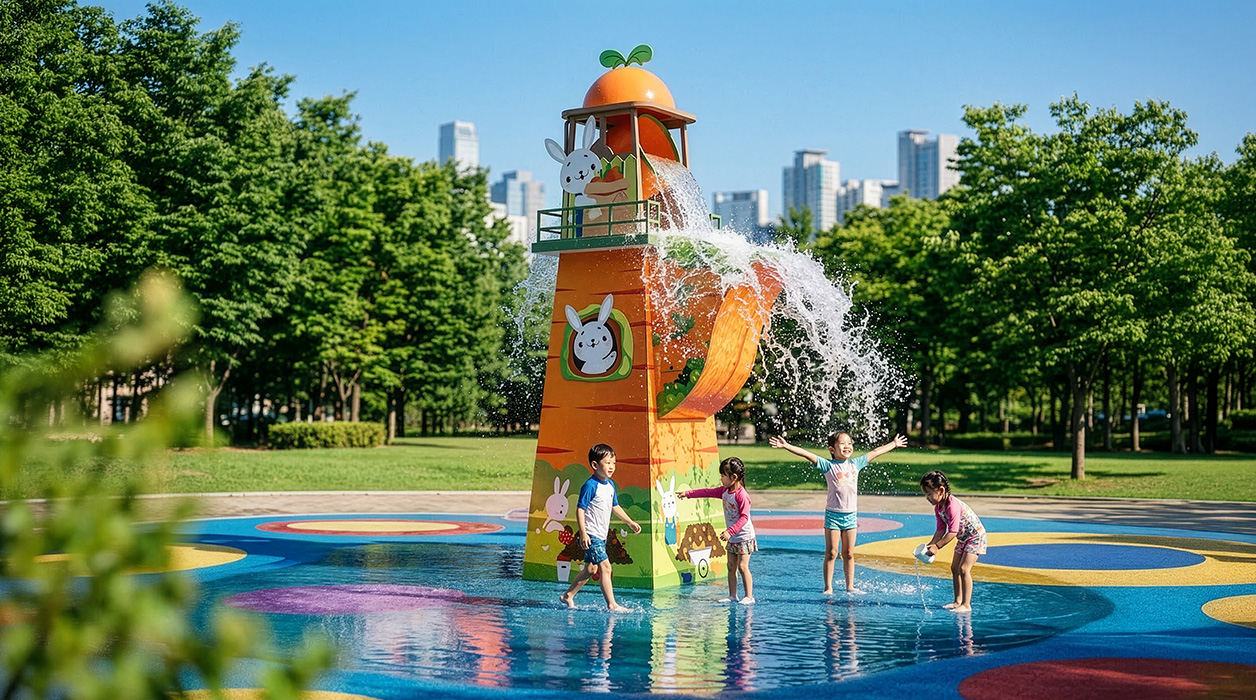 버니 스플래시(Bunny Splash)|GAWP-101 제품목록으로 바로가기 자료 및 바로가기 나라장터 바로연결 도면 다운로드 시공사진 보러가기 기타 아이들이 동화 속 토끼 농장에 놀러 온 것 같은 느낌을 주며, 당근 타워에서 물이 쏟아지는 시각적인 즐거움과 직접 물을 맞고 노는 촉각적인 즐거움을 동시에 제공하는 것을 목표로 합니다. 제품명 버니 스플래시(Bunny Splash)|GAWP-101 물품식별번호 규격 1,913 x 2,832 x 5,907(H) 재질 sts, hpl 버니 스플래시(Bunny Splash)|GAWP-101 물품식별번호 규격 1,913 x 2,832 x 5,907(H) 재질 sts, hpl 기타 아이들이 동화 속 토끼 농장에 놀러 온 것 같은 느낌을 주며, 당근 타워에서 물이 쏟아지는 시각적인 즐거움과 직접 물을 맞고 노는 촉각적인 즐거움을 동시에 제공하는 것을 목표로 합니다. 자료 및 바로가기 나라장터 바로연결 도면 다운로드 시공사진 보러가기