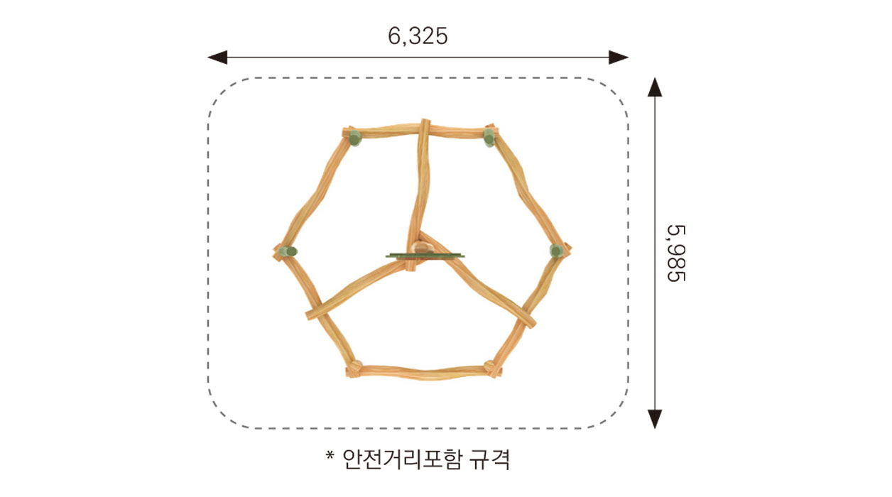 F&K-RO-014(육각중심잡기놀이대) 안전인증번호 | CA023H074-20048 제품목록으로 바로가기 자료 및 바로가기 나라장터 바로연결 도면 다운로드 시공사진 보러가기 기타 육각 형태로 구성된 원목 발판 위를 걸으며 중심을 잡는 놀이시설로, 아이들이 자연스럽게 균형감각과 신체조절 능력을 키울 수 있습니다. 중앙 기둥과 곡선 기둥이 시각적 흥미를 더해 숲속에서 탐험하는 듯한 경험을 제공합니다. 제품명 F&K-RO-014(육각중심잡기놀이대) 안전인증번호 | CA023H074-20048 물품식별번호 24050920 규격 규격 3,325 × 2,985 × 3,500(H) 재질 robinia F&K-RO-014(육각중심잡기놀이대) 안전인증번호 | CA023H074-20048 물품식별번호 24050920 규격 규격 3,325 × 2,985 × 3,500(H) 재질 robinia 기타 육각 형태로 구성된 원목 발판 위를 걸으며 중심을 잡는 놀이시설로, 아이들이 자연스럽게 균형감각과 신체조절 능력을 키울 수 있습니다. 중앙 기둥과 곡선 기둥이 시각적 흥미를 더해 숲속에서 탐험하는 듯한 경험을 제공합니다. 자료 및 바로가기 나라장터 바로연결 도면 다운로드 시공사진 보러가기