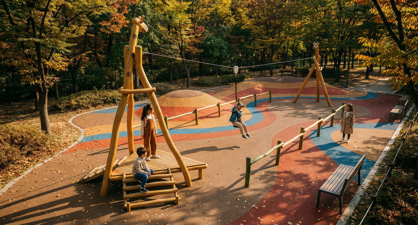 FNK-RO-017-2(기린짚라인A) 안전인증번호 | CA023H074-0057 제품목록으로 바로가기 자료 및 바로가기 나라장터 바로연결 도면 다운로드 시공사진 보러가기 기타 기린 모양의 타워를 시작점으로 짚라인을 타고 시원하게 활강하는 놀이시설로, 아이들이 속도감과 짜릿한 모험을 즐기며 균형감각과 상체 근력을 기를 수 있습니다. 자연목 디자인이 주변 환경과 조화를 이루며, 놀이 자체가 하나의 숲속 여행처럼 느껴지도록 구성되어 있습니다. 제품명 FNK-RO-017-2(기린짚라인A) 안전인증번호 | CA023H074-0057 물품식별번호 25116384 규격 18,075 × 4,400 × 5,200(H) 재질 robinia FNK-RO-017-2(기린짚라인A) 안전인증번호 | CA023H074-0057 물품식별번호 25116384 규격 18,075 × 4,400 × 5,200(H) 재질 robinia 기타 기린 모양의 타워를 시작점으로 짚라인을 타고 시원하게 활강하는 놀이시설로, 아이들이 속도감과 짜릿한 모험을 즐기며 균형감각과 상체 근력을 기를 수 있습니다. 자연목 디자인이 주변 환경과 조화를 이루며, 놀이 자체가 하나의 숲속 여행처럼 느껴지도록 구성되어 있습니다. 자료 및 바로가기 나라장터 바로연결 도면 다운로드 시공사진 보러가기