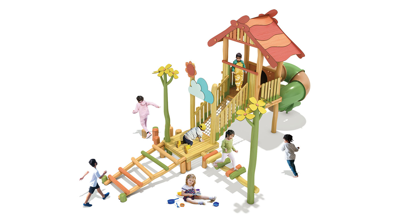 블로썸 스텝 로비니아 플레이(Blossom Step Robinia Play)|FNK-RO-107A-5 제품목록으로 바로가기 자료 및 바로가기 나라장터 바로연결 도면 다운로드 시공사진 보러가기 기타 로비니아 원목을 활용해 꽃과 자연 요소를 형상화한 단일 타워형 놀이대로, 징검·오르기·미끄럼 동선을 통해 아이들이 단계적으로 이동하며 균형감과 자연 탐험 놀이를 경험하도록 구성한 로비니아 조합놀이대이다. 제품명 블로썸 스텝 로비니아 플레이(Blossom Step Robinia Play)|FNK-RO-107A-5 물품식별번호 25988206|안전인증번호:CA023H10019-2001 규격 8,495 × 4,680 × 4,470(H), 4종 재질 robinia, hpl, pe, PP rope, hard wood 블로썸 스텝 로비니아 플레이(Blossom Step Robinia Play)|FNK-RO-107A-5 물품식별번호 25988206|안전인증번호:CA023H10019-2001 규격 8,495 × 4,680 × 4,470(H), 4종 재질 robinia, hpl, pe, PP rope, hard wood 기타 로비니아 원목을 활용해 꽃과 자연 요소를 형상화한 단일 타워형 놀이대로, 징검·오르기·미끄럼 동선을 통해 아이들이 단계적으로 이동하며 균형감과 자연 탐험 놀이를 경험하도록 구성한 로비니아 조합놀이대이다. 자료 및 바로가기 나라장터 바로연결 도면 다운로드 시공사진 보러가기