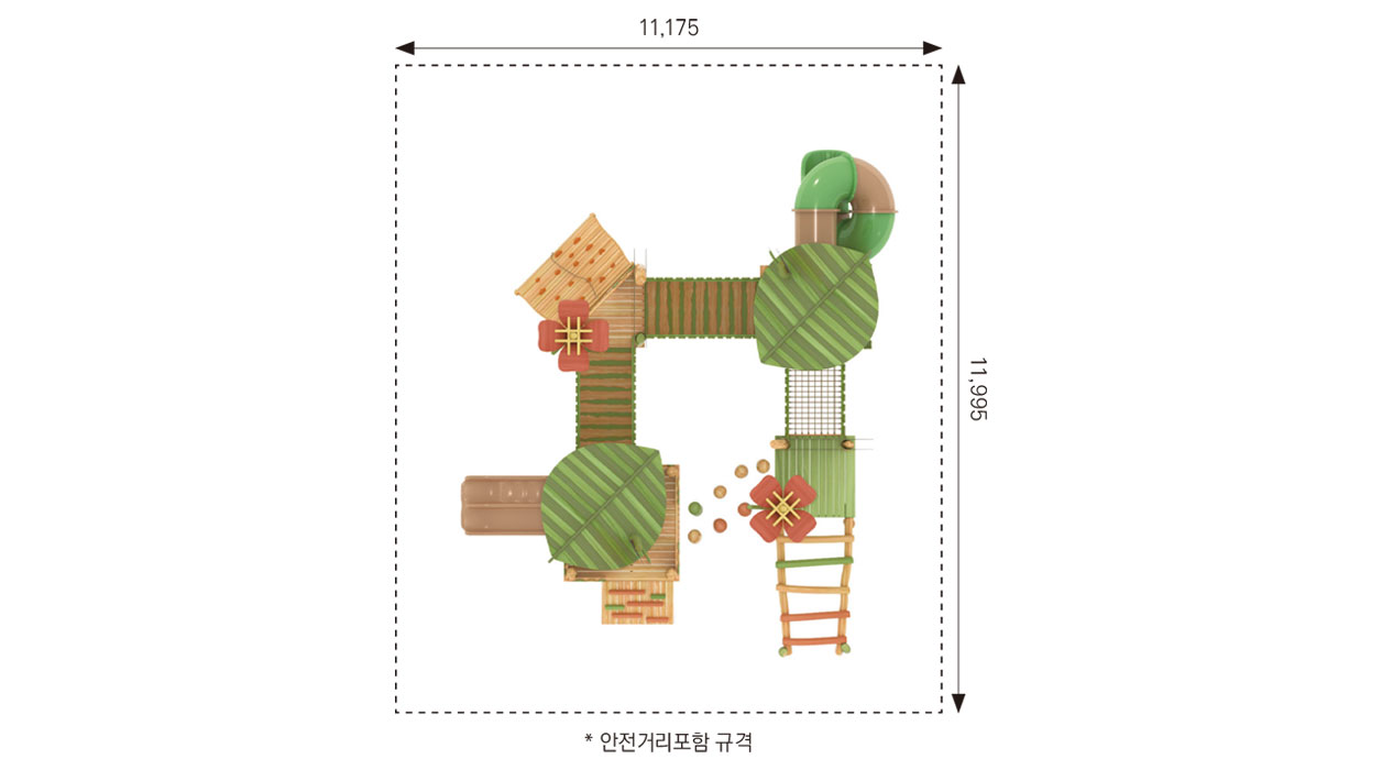 리프 가든 로비니아 플레이(Reef Garden Robinia Play)|FNK-RO-106-1 제품목록으로 바로가기 자료 및 바로가기 나라장터 바로연결 도면 다운로드 시공사진 보러가기 기타 로비니아 원목의 질감을 살린 잎사귀 모티브 구조에 데크·브리지·징검 요소를 연결해 아이들이 걷고 건너며 균형감과 탐험 놀이를 자연스럽게 경험하도록 구성한 로비니아 조합놀이대이다. 제품명 리프 가든 로비니아 플레이(Reef Garden Robinia Play)|FNK-RO-106-1 물품식별번호 24724862|안전인증번호:CA023H10019-2001 규격 8,495 × 7,675 × 4,530(H), 8종 재질 robinia, hpl, pe, PP rope, hard wood 리프 가든 로비니아 플레이(Reef Garden Robinia Play)|FNK-RO-106-1 물품식별번호 24724862|안전인증번호:CA023H10019-2001 규격 8,495 × 7,675 × 4,530(H), 8종 재질 robinia, hpl, pe, PP rope, hard wood 기타 로비니아 원목의 질감을 살린 잎사귀 모티브 구조에 데크·브리지·징검 요소를 연결해 아이들이 걷고 건너며 균형감과 탐험 놀이를 자연스럽게 경험하도록 구성한 로비니아 조합놀이대이다. 자료 및 바로가기 나라장터 바로연결 도면 다운로드 시공사진 보러가기