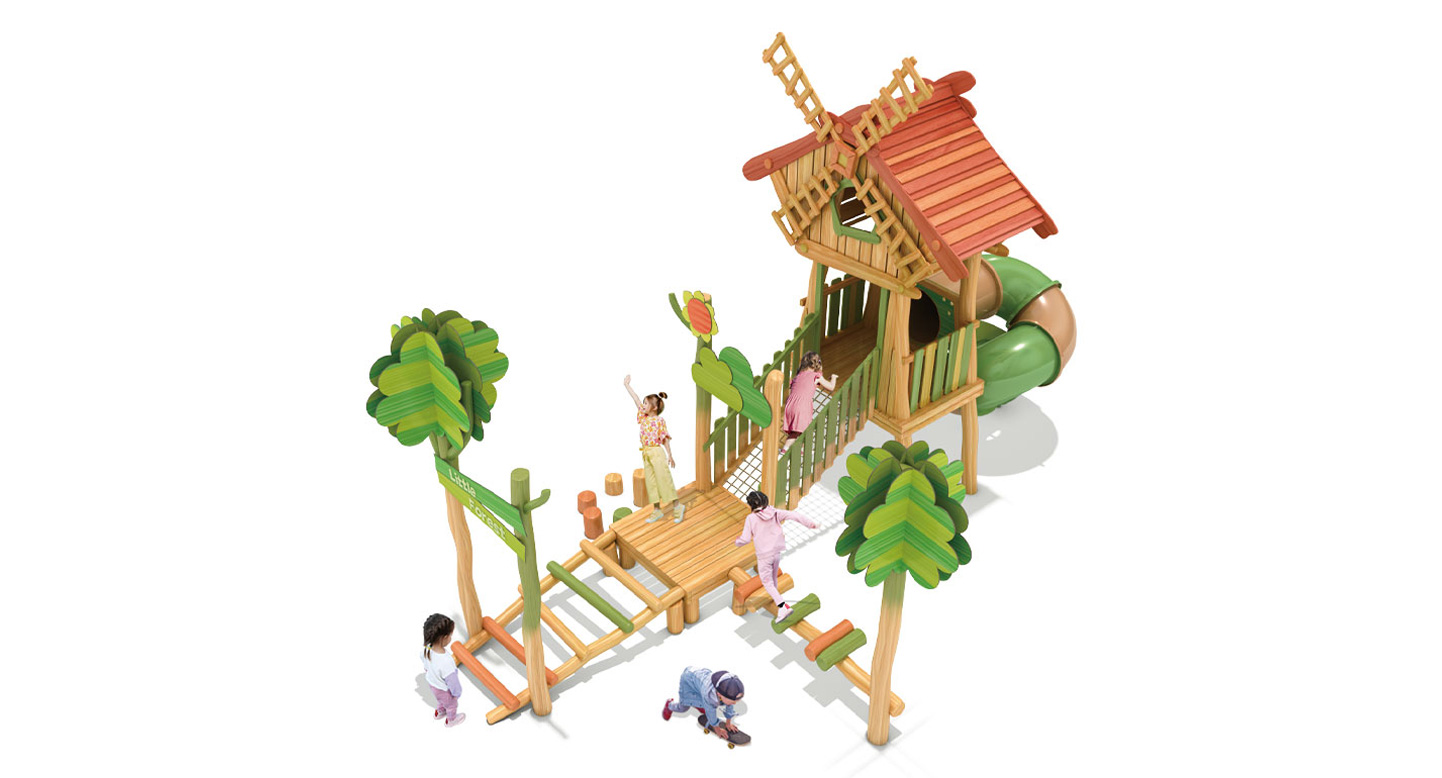 리틀 윈드밀 로비니아 플레이(Little Windmill Robinia Play)|FNK-RO-105-5 제품목록으로 바로가기 자료 및 바로가기 나라장터 바로연결 도면 다운로드 시공사진 보러가기 기타 로비니아 원목으로 제작한 풍차 오두막을 중심으로 징검·브리지·오르기 요소를 배치해 아이들이 걷고 건너며 균형감과 탐험 놀이를 자연스럽게 경험하도록 구성한 로비니아 조합놀이대이다. 제품명 리틀 윈드밀 로비니아 플레이(Little Windmill Robinia Play)|FNK-RO-105-5 물품식별번호 24724873|안전인증번호:CA023H10019-2001 규격 8,895 × 5,316 × 5,390(H), 4종 재질 robinia, hpl, pe, PP rope, hard wood 리틀 윈드밀 로비니아 플레이(Little Windmill Robinia Play)|FNK-RO-105-5 물품식별번호 24724873|안전인증번호:CA023H10019-2001 규격 8,895 × 5,316 × 5,390(H), 4종 재질 robinia, hpl, pe, PP rope, hard wood 기타 로비니아 원목으로 제작한 풍차 오두막을 중심으로 징검·브리지·오르기 요소를 배치해 아이들이 걷고 건너며 균형감과 탐험 놀이를 자연스럽게 경험하도록 구성한 로비니아 조합놀이대이다. 자료 및 바로가기 나라장터 바로연결 도면 다운로드 시공사진 보러가기