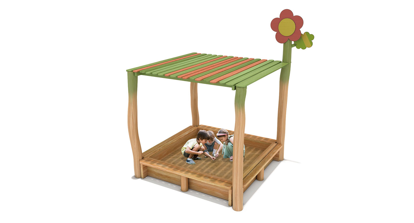 자연친화적인 원목 구조로 제작된 모래놀이 공간으로, 지붕이 있어 햇빛을 차단하며 쾌적하게 놀이할 수 있습니다. 아이들이 모래를 활용한 만들기·탐색 놀이를 통해 감각 발달과 창의력을 키울 수 있는 자연형 놀이시설입니다. 귀여운 꽃 장식 요소가 추가되어 정서적 안정감과 즐거움을 함께 제공합니다.