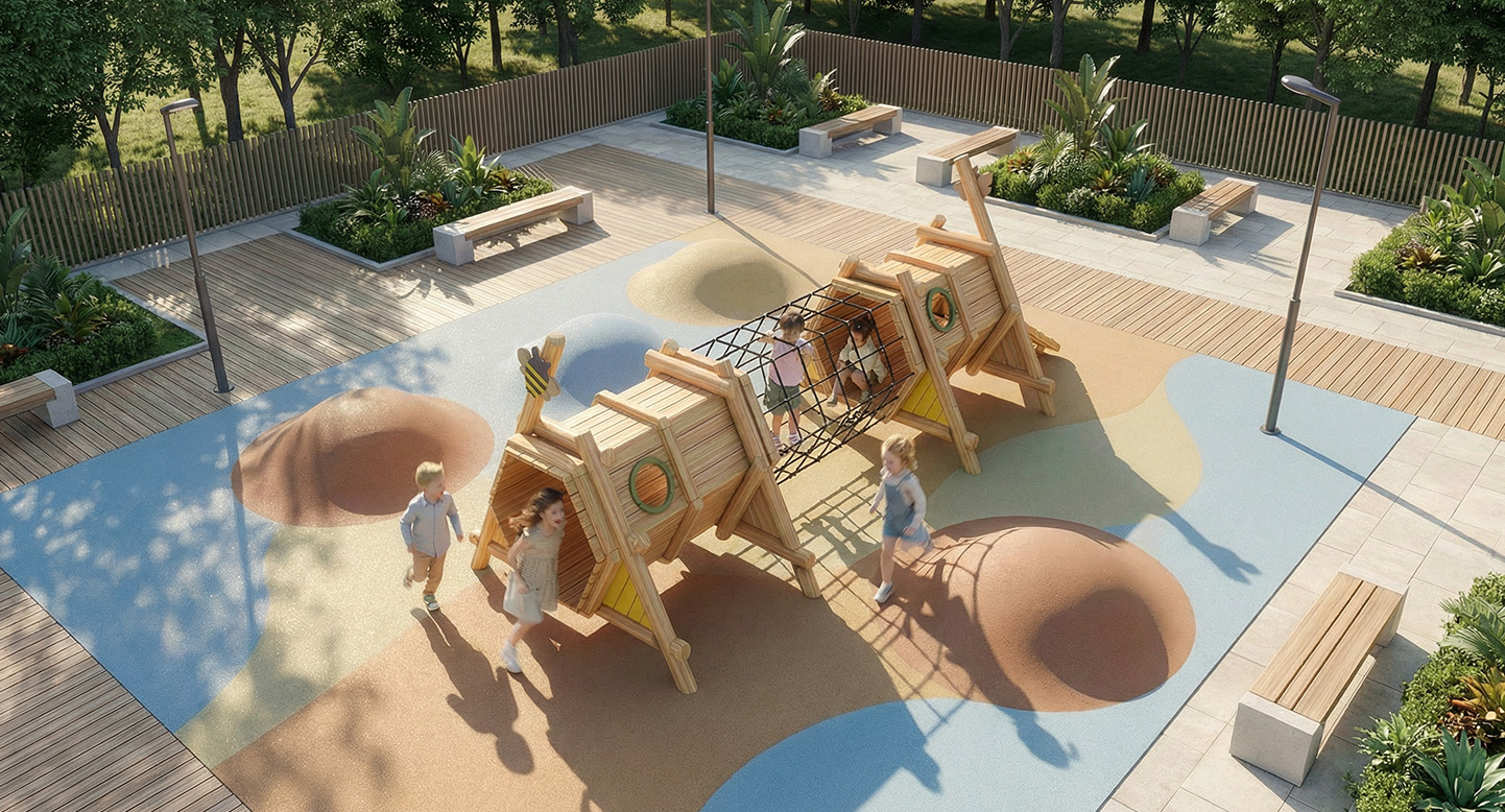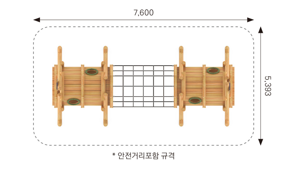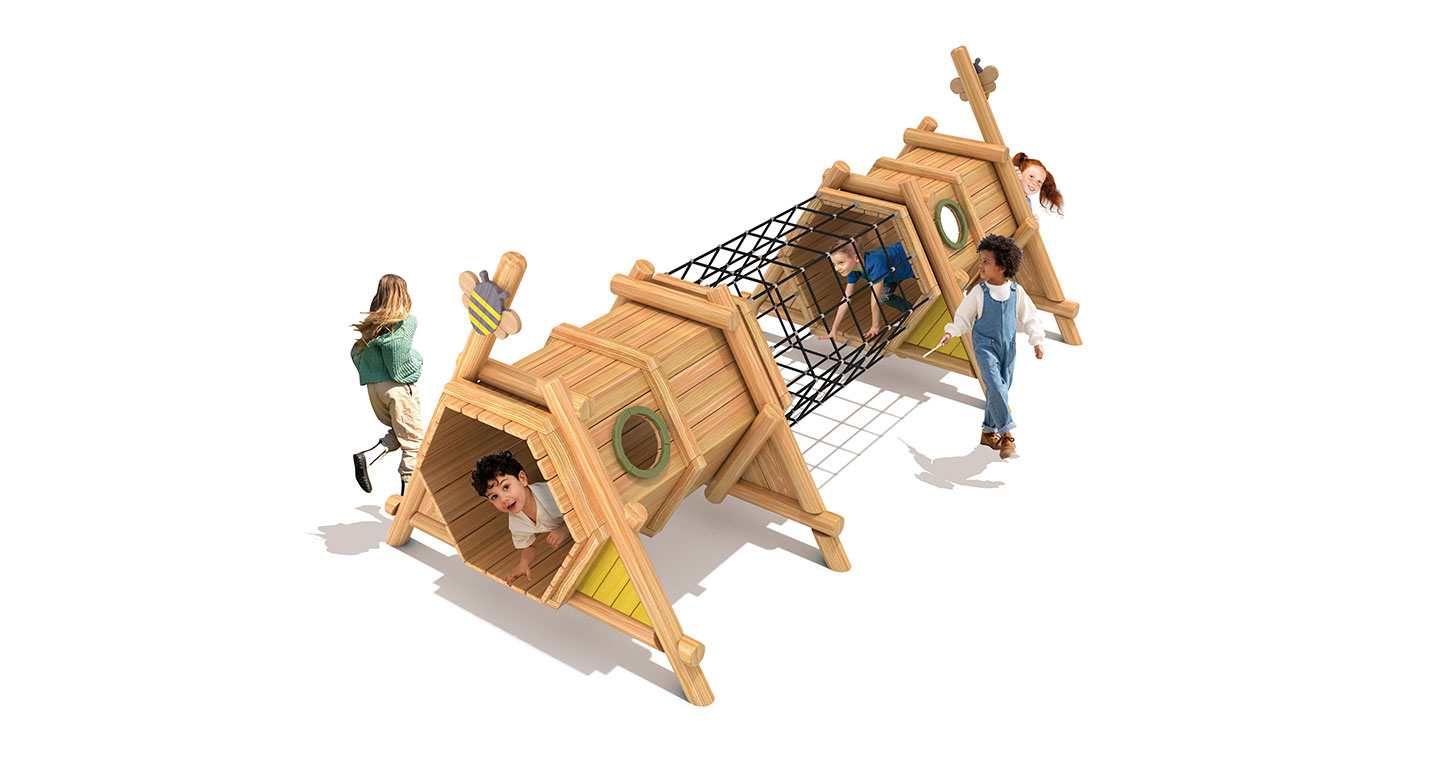 F&K-RO-012(벌집통과놀이대A) 안전인증번호 | CA023H074-20055 제품목록으로 바로가기 자료 및 바로가기 나라장터 바로연결 도면 다운로드 시공사진 보러가기 기타 벌집 모양의 목재 터널과 그물 통과 구조로 이루어진 놀이시설로, 아이들이 기어서 지나가고 네트 위를 움직이며 전신 근력을 사용하고 협응력을 키울 수 있습니다. 자연친화적인 디자인과 벌 테마 요소가 더해져, 탐험 놀이와 상상력을 동시에 자극하는 체험형 놀이공간입니다. 제품명 F&K-RO-012(벌집통과놀이대A) 안전인증번호 | CA023H074-20055 물품식별번호 24050916 규격 4,600 × 2,393 × 2,150(H) 재질 robinia, PP rope F&K-RO-012(벌집통과놀이대A) 안전인증번호 | CA023H074-20055 물품식별번호 24050916 규격 4,600 × 2,393 × 2,150(H) 재질 robinia, PP rope 기타 벌집 모양의 목재 터널과 그물 통과 구조로 이루어진 놀이시설로, 아이들이 기어서 지나가고 네트 위를 움직이며 전신 근력을 사용하고 협응력을 키울 수 있습니다. 자연친화적인 디자인과 벌 테마 요소가 더해져, 탐험 놀이와 상상력을 동시에 자극하는 체험형 놀이공간입니다. 자료 및 바로가기 나라장터 바로연결 도면 다운로드 시공사진 보러가기