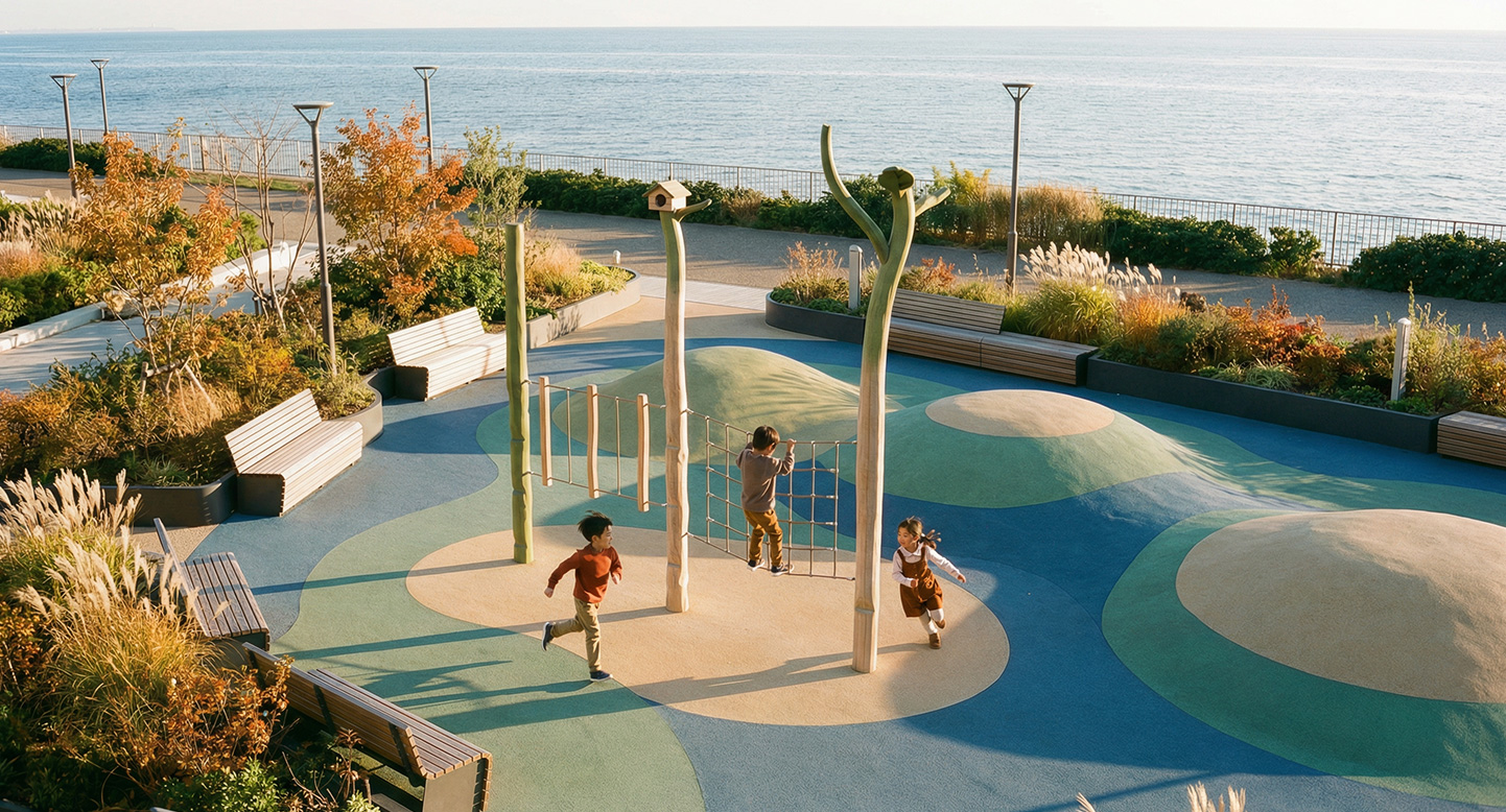 자연 수목을 형상화한 로비니아 목재 기둥과 로프 네트, 밸런스 브리지를 활용한 장애물 코스로, 아이들이 오르기‧건너기‧매달리기 등의 전신 활동을 통해 균형감각과 근력을 자연스럽게 발달시킬 수 있는 숲 테마 놀이시설입니다. 간결한 동선 구성으로 작은 공간에서도 높은 놀이 효과를 제공합니다.