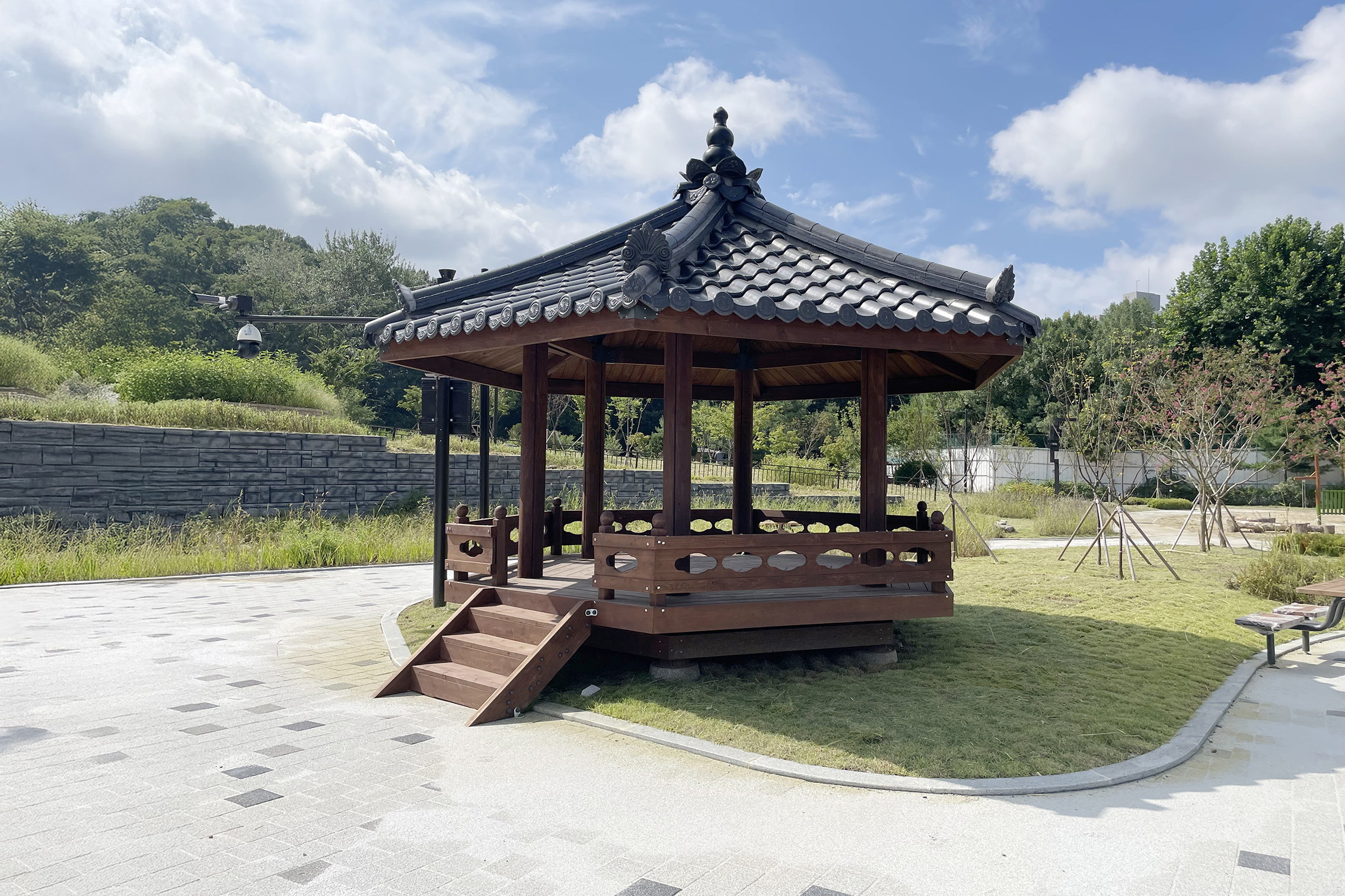 지붕마감을 시멘트기와를 이용한 형태의 정자
