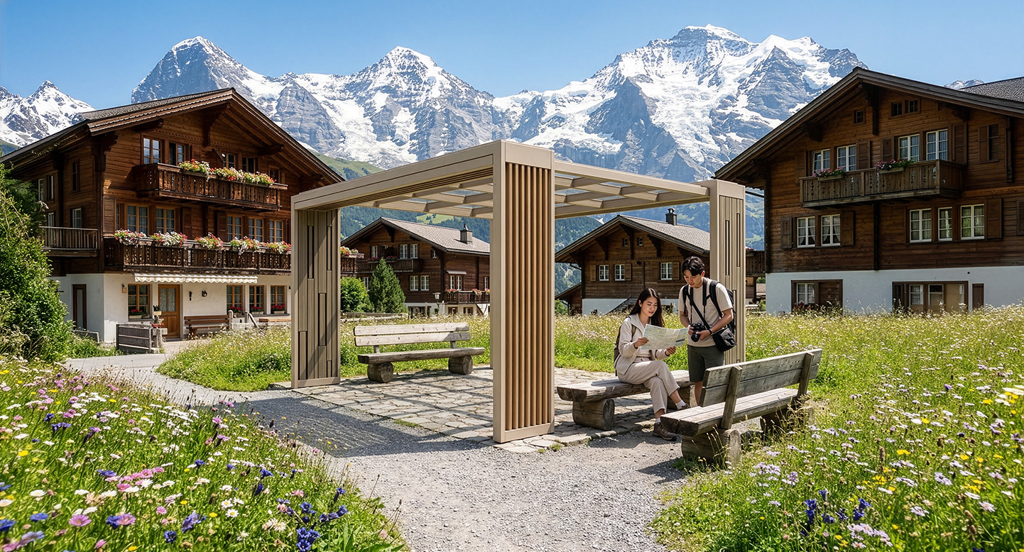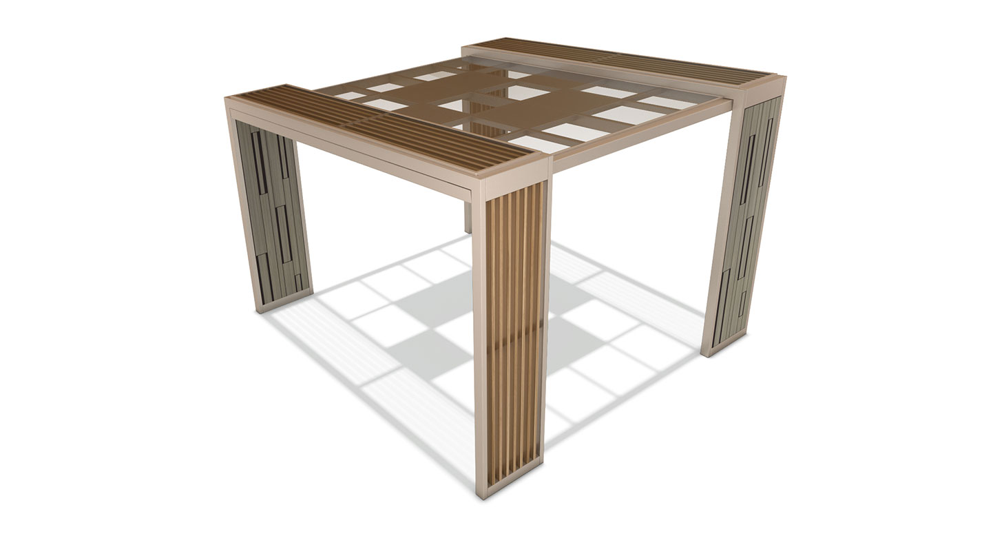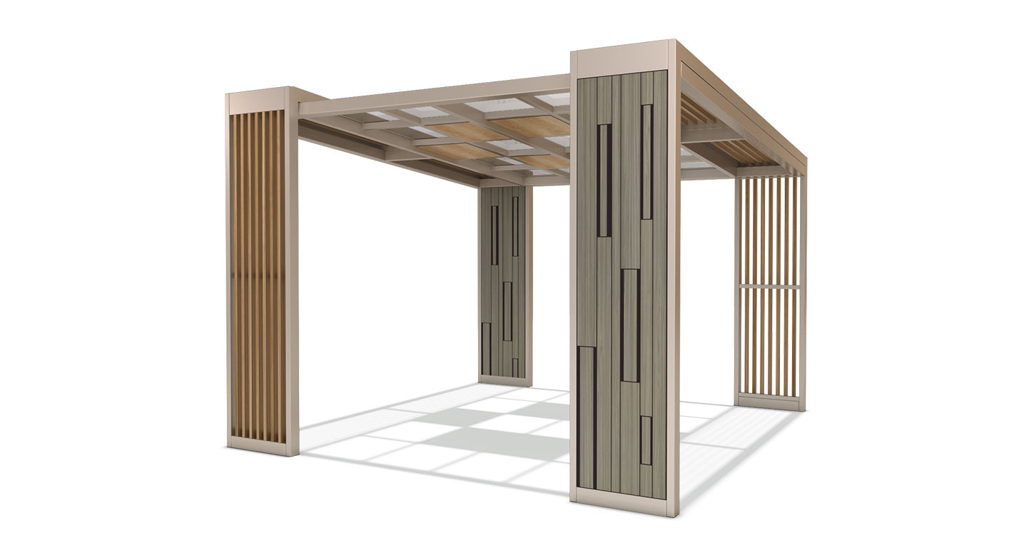 베이지 모듈 퍼걸러 (Beige Module Pergola)|GC-P-2118 제품목록으로 바로가기 자료 및 바로가기 나라장터 바로연결 도면 다운로드 시공사진 보러가기 기타 부드러운 베이지 톤과 우드 슬랫을 조합해 감성적이면서도 세련된 분위기를 담아낸 퍼걸러입니다. 기둥의 모듈형 패턴이 공간에 리듬감을 더하며, 공원·커뮤니티 공간에 자연스럽게 어우러집니다. 제품명 베이지 모듈 퍼걸러 (Beige Module Pergola)|GC-P-2118 물품식별번호 25615522 규격 4,000 × 4,000 × 2,880(H) 재질 stl, galvanized, polycarbonate, hard wood 베이지 모듈 퍼걸러 (Beige Module Pergola)|GC-P-2118 물품식별번호 25615522 규격 4,000 × 4,000 × 2,880(H) 재질 stl, galvanized, polycarbonate, hard wood 기타 부드러운 베이지 톤과 우드 슬랫을 조합해 감성적이면서도 세련된 분위기를 담아낸 퍼걸러입니다. 기둥의 모듈형 패턴이 공간에 리듬감을 더하며, 공원·커뮤니티 공간에 자연스럽게 어우러집니다. 자료 및 바로가기 나라장터 바로연결 도면 다운로드 시공사진 보러가기