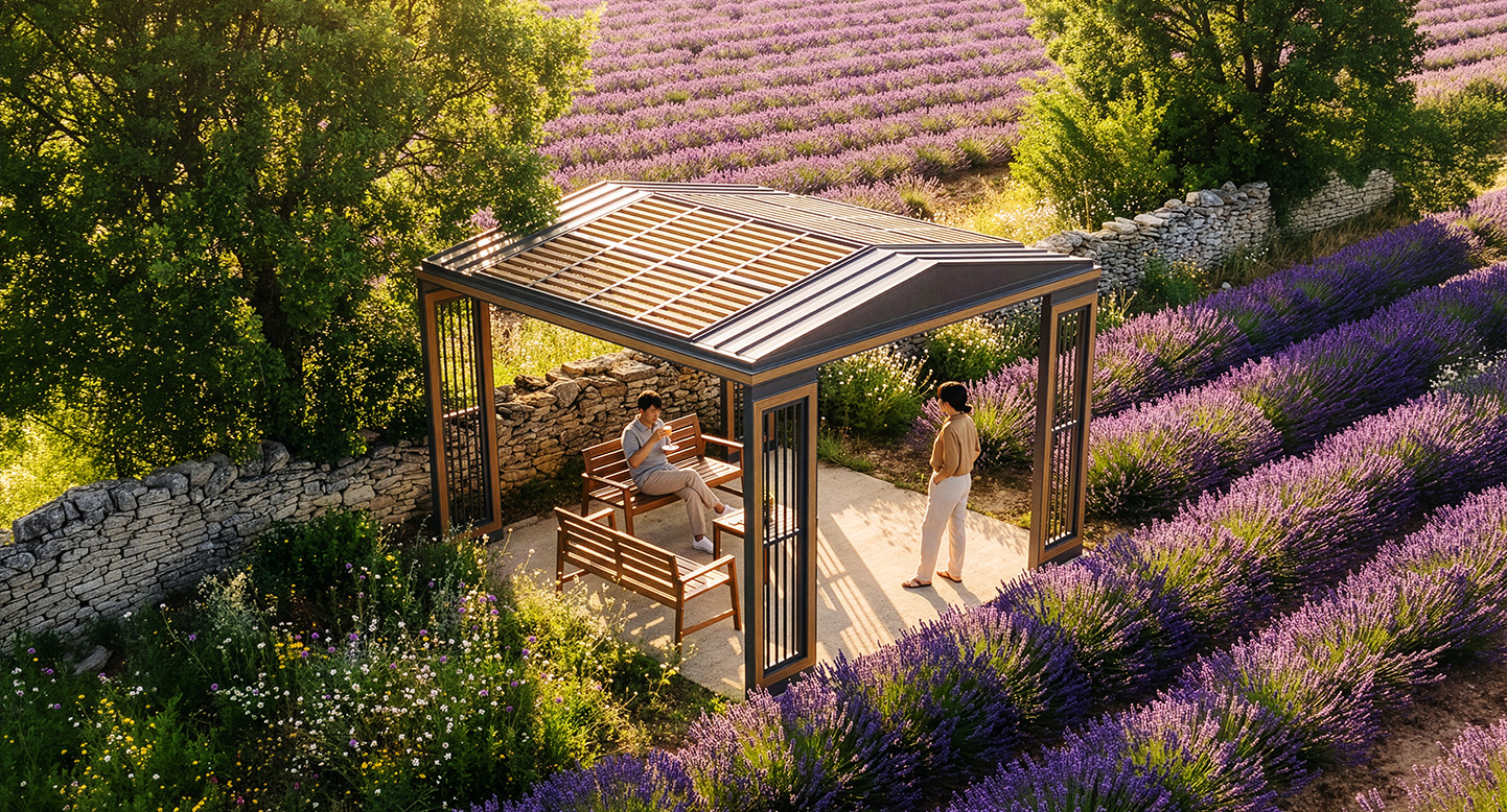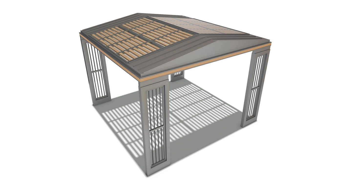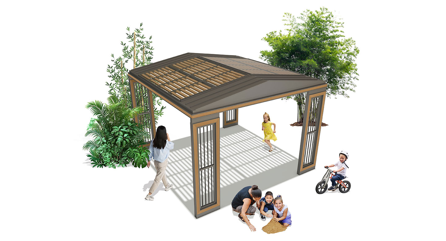 루프 슬랫 가제보 (Roof Slat Gazebo)|GC-P-125A 제품목록으로 바로가기 자료 및 바로가기 나라장터 바로연결 도면 다운로드 시공사진 보러가기 기타 경사형 루버 지붕과 우드 포인트 기둥을 조화롭게 구성해 자연스러운 그늘과 개방감을 제공하는 쉼터입니다. 슬릿 라인의 기둥 디자인이 공간에 세련된 리듬감을 더하며, 가족 활동·어린이 공간에 특히 잘 어울립니다. 제품명 루프 슬랫 가제보 (Roof Slat Gazebo)|GC-P-125A 물품식별번호 25651488 규격 4,000 × 4,000 × 2,975(H) 재질 stl, galvanized, hard wood, polycarbonate 루프 슬랫 가제보 (Roof Slat Gazebo)|GC-P-125A 물품식별번호 25651488 규격 4,000 × 4,000 × 2,975(H) 재질 stl, galvanized, hard wood, polycarbonate 기타 경사형 루버 지붕과 우드 포인트 기둥을 조화롭게 구성해 자연스러운 그늘과 개방감을 제공하는 쉼터입니다. 슬릿 라인의 기둥 디자인이 공간에 세련된 리듬감을 더하며, 가족 활동·어린이 공간에 특히 잘 어울립니다. 자료 및 바로가기 나라장터 바로연결 도면 다운로드 시공사진 보러가기