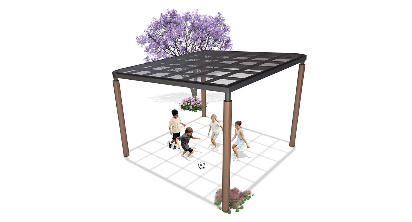 라운드 그리드 퍼걸러 (Round Grid Pergola)|GC-P-2141 제품목록으로 바로가기 자료 및 바로가기 나라장터 바로연결 도면 다운로드 시공사진 보러가기 기타 부드러운 곡선 기둥과 깔끔한 그리드 지붕을 조합해 밝고 경쾌한 분위기를 연출한 퍼걸러입니다. 개방형 구조로 어린이 활동 공간에 특히 잘 어울리며, 바닥에 드리워지는 그리드 그림자가 공간에 재미를 더합니다. 제품명 라운드 그리드 퍼걸러 (Round Grid Pergola)|GC-P-2141 물품식별번호 25651663 규격 4,000 × 4,000 × 2,865(H) 재질 stl, polycarbonate 라운드 그리드 퍼걸러 (Round Grid Pergola)|GC-P-2141 물품식별번호 25651663 규격 4,000 × 4,000 × 2,865(H) 재질 stl, polycarbonate 기타 부드러운 곡선 기둥과 깔끔한 그리드 지붕을 조합해 밝고 경쾌한 분위기를 연출한 퍼걸러입니다. 개방형 구조로 어린이 활동 공간에 특히 잘 어울리며, 바닥에 드리워지는 그리드 그림자가 공간에 재미를 더합니다. 자료 및 바로가기 나라장터 바로연결 도면 다운로드 시공사진 보러가기