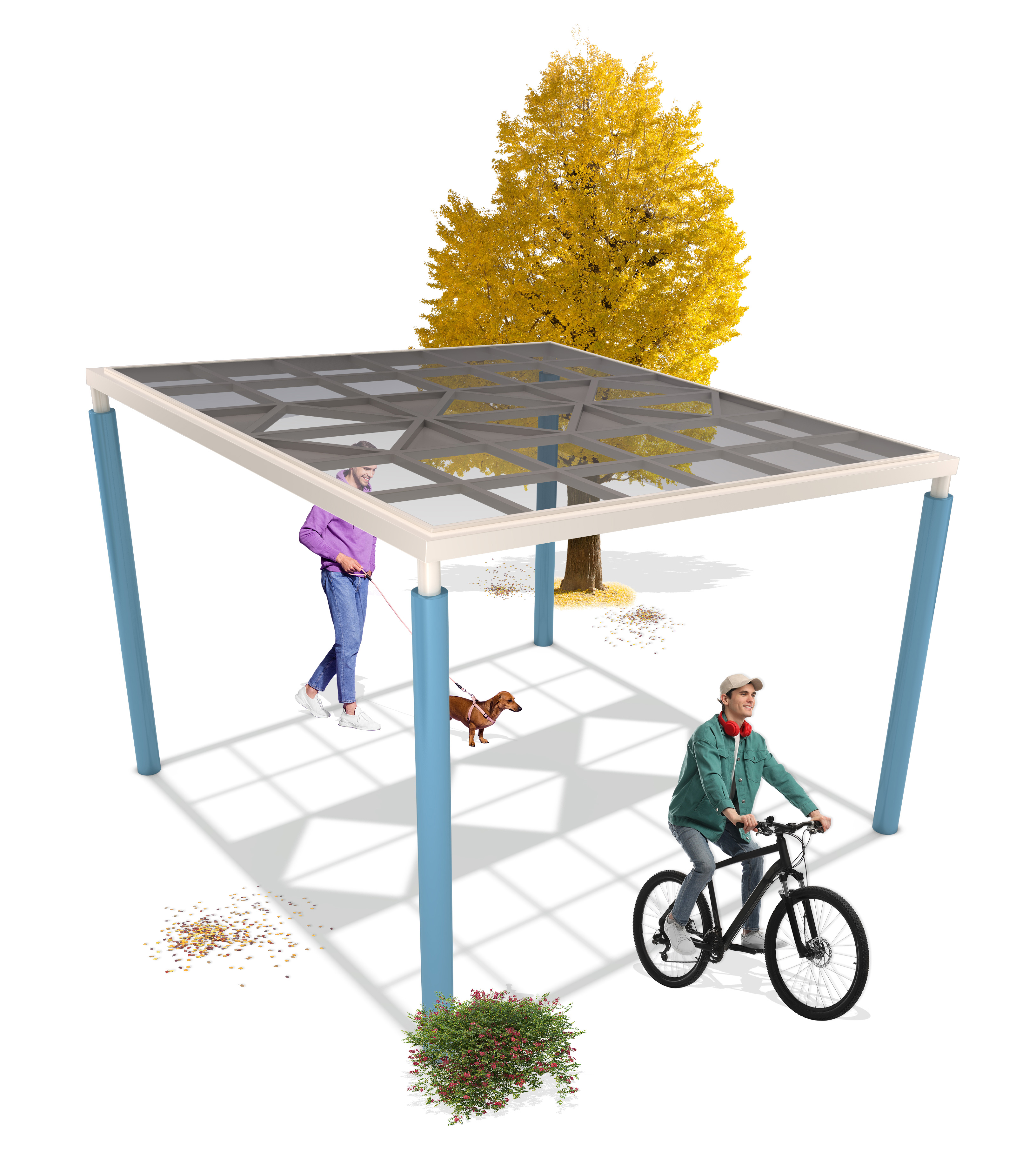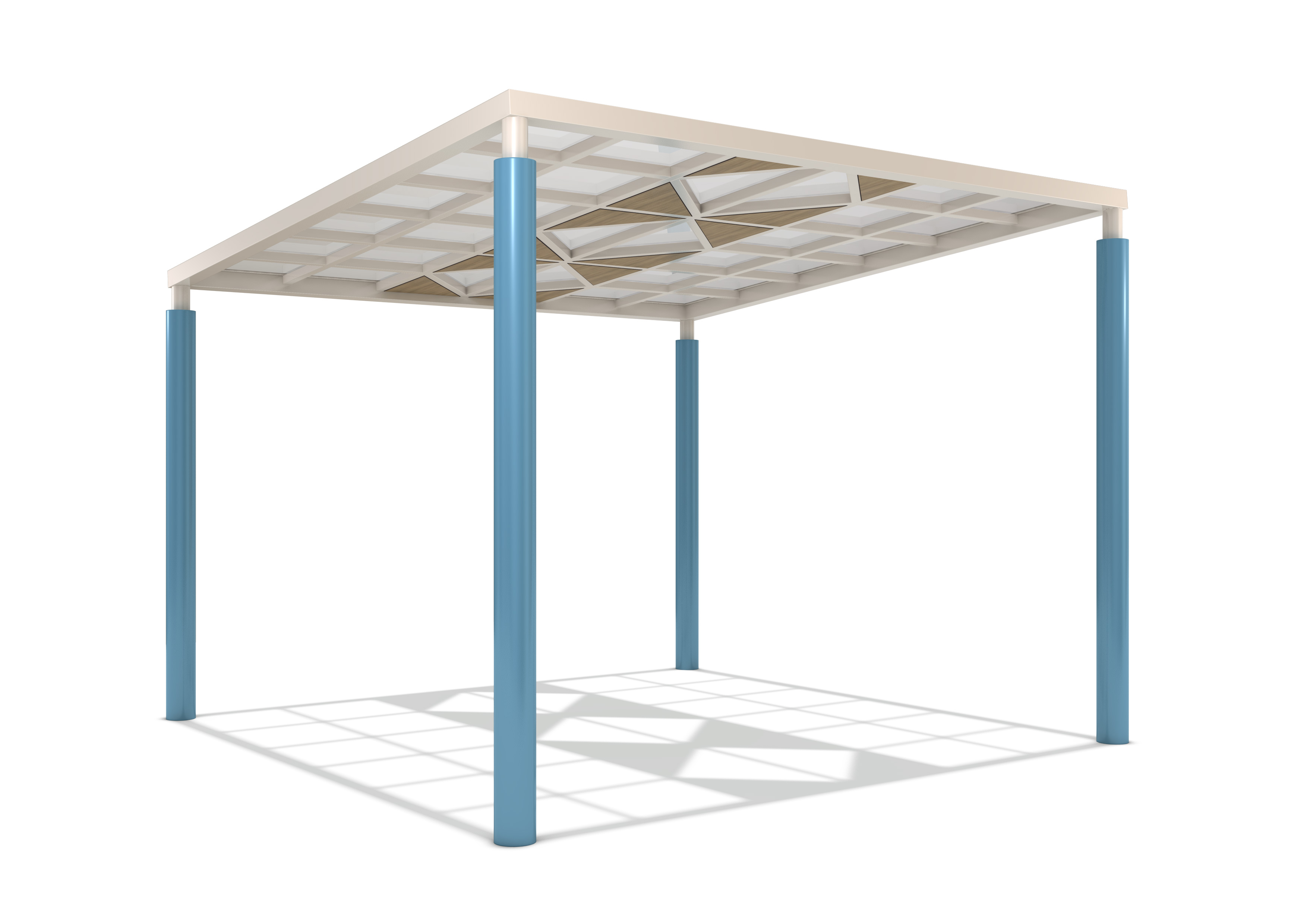 지오스카이 퍼걸러 (Geo Sky Pergola)|GC-P-2140 제품목록으로 바로가기 자료 및 바로가기 나라장터 바로연결 도면 다운로드 시공사진 보러가기 기타 밝은 스카이블루 기둥과 부드러운 톤의 프레임이 산뜻한 분위기를 연출하며, 루프의 기하학 패턴이 공간에 개방감과 리듬감을 더합니다. 도심 산책길·공원에서 가볍고 청량한 쉼터 포인트로 활용하기 좋은 디자인입니다. 제품명 지오스카이 퍼걸러 (Geo Sky Pergola)|GC-P-2140 물품식별번호 25651662 규격 3,800 × 3,800 × 2,865(H) 재질 stl, polycarbonate 지오스카이 퍼걸러 (Geo Sky Pergola)|GC-P-2140 물품식별번호 25651662 규격 3,800 × 3,800 × 2,865(H) 재질 stl, polycarbonate 기타 밝은 스카이블루 기둥과 부드러운 톤의 프레임이 산뜻한 분위기를 연출하며, 루프의 기하학 패턴이 공간에 개방감과 리듬감을 더합니다. 도심 산책길·공원에서 가볍고 청량한 쉼터 포인트로 활용하기 좋은 디자인입니다. 자료 및 바로가기 나라장터 바로연결 도면 다운로드 시공사진 보러가기