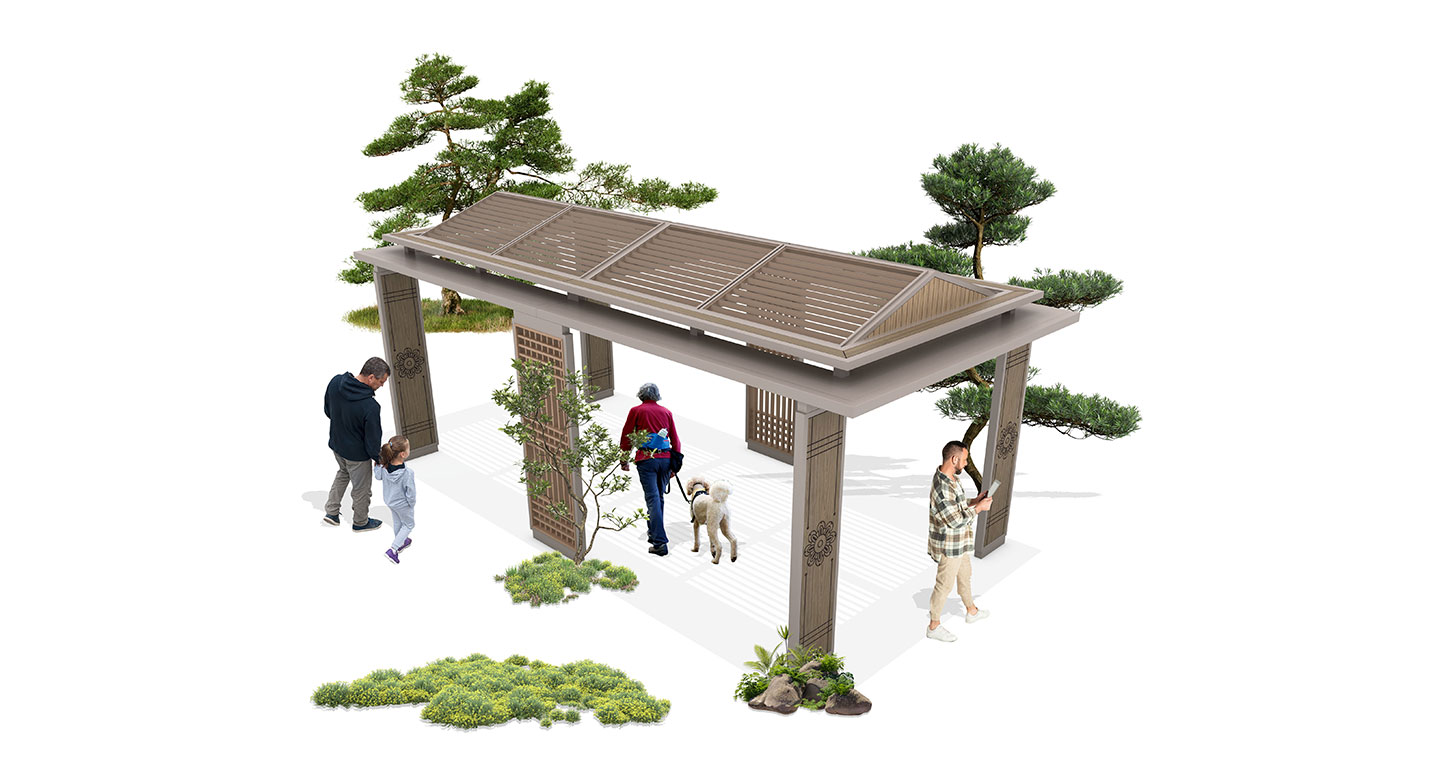 한옥가온 쉘터 (Hanok Gaon Shelter)|GC-P-1721 제품목록으로 바로가기 자료 및 바로가기 나라장터 바로연결 도면 다운로드 시공사진 보러가기 기타 전통 한옥의 처마 감성을 현대적으로 재해석한 쉼터입니다. 루버 지붕과 조형 패턴 기둥을 적용해 빛, 바람, 자연 요소가 어우러지며 주민들이 편안하게 머물 수 있는 휴식 공간을 제공합니다. 제품명 한옥가온 쉘터 (Hanok Gaon Shelter)|GC-P-1721 물품식별번호 25615564 규격 8,000 × 4,000 × 3,675(H) 재질 stl, galvanized, polycarbonate, hard wood, hpl 한옥가온 쉘터 (Hanok Gaon Shelter)|GC-P-1721 물품식별번호 25615564 규격 8,000 × 4,000 × 3,675(H) 재질 stl, galvanized, polycarbonate, hard wood, hpl 기타 전통 한옥의 처마 감성을 현대적으로 재해석한 쉼터입니다. 루버 지붕과 조형 패턴 기둥을 적용해 빛, 바람, 자연 요소가 어우러지며 주민들이 편안하게 머물 수 있는 휴식 공간을 제공합니다. 자료 및 바로가기 나라장터 바로연결 도면 다운로드 시공사진 보러가기