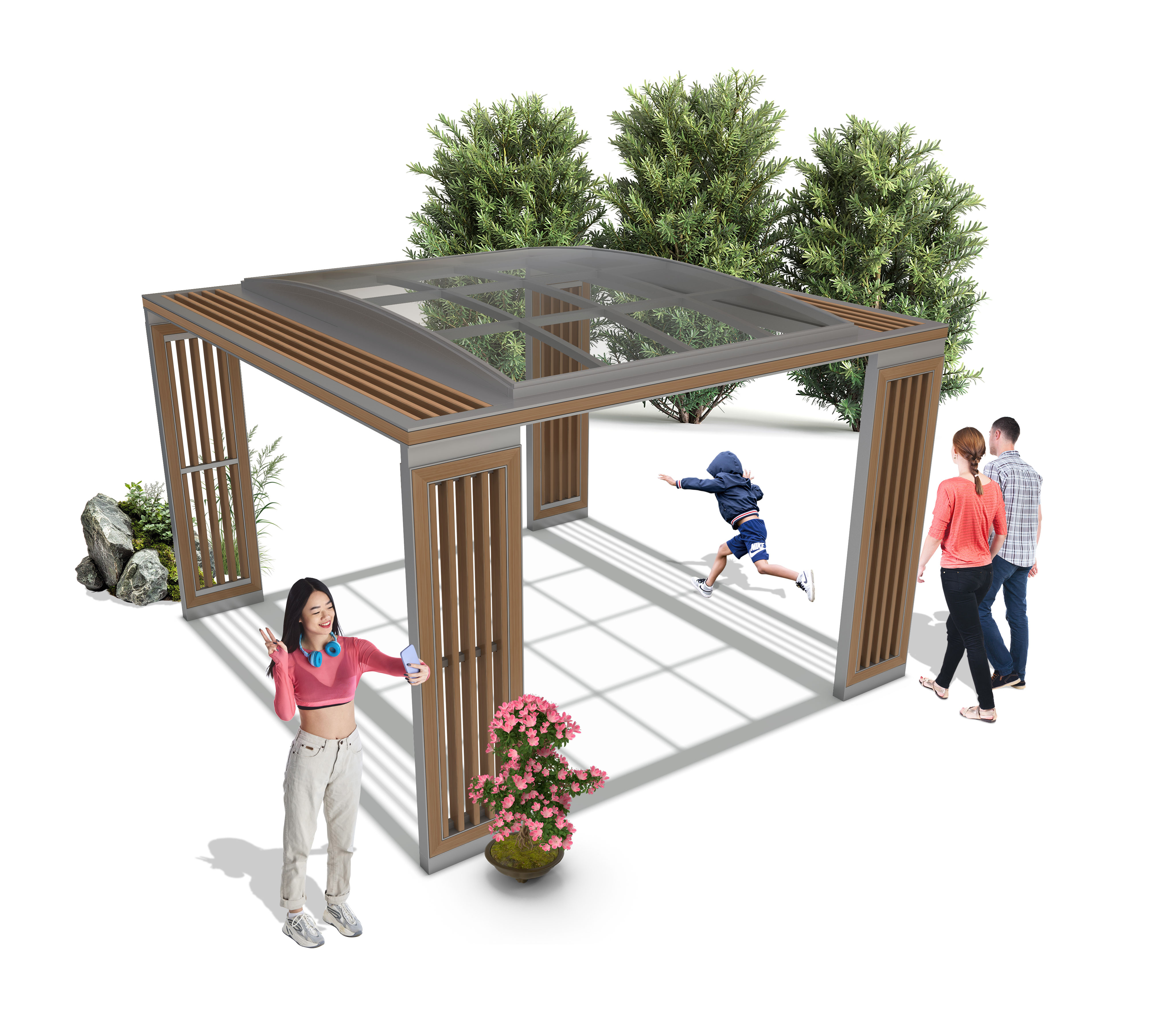 커브슬랫 퍼걸러 (Curve Slat Pergola)|GC-P-123B 제품목록으로 바로가기 자료 및 바로가기 나라장터 바로연결 도면 다운로드 시공사진 보러가기 기타 부드럽게 휘어진 루프와 세로 슬랫 기둥이 조화를 이루며 공원·단지 공간에 자연스러운 개방감과 따뜻한 분위기를 제공합니다. 심플한 구조 속에 우드 포인트를 더해 다양한 이용자에게 편안하고 현대적인 쉼터 경험을 제공합니다. 제품명 커브슬랫 퍼걸러 (Curve Slat Pergola)|GC-P-123B 물품식별번호 25636385 규격 4,000 × 4,000 × 2,800(H) 재질 stl, galvanized, hard wood, polycarbonate 커브슬랫 퍼걸러 (Curve Slat Pergola)|GC-P-123B 물품식별번호 25636385 규격 4,000 × 4,000 × 2,800(H) 재질 stl, galvanized, hard wood, polycarbonate 기타 부드럽게 휘어진 루프와 세로 슬랫 기둥이 조화를 이루며 공원·단지 공간에 자연스러운 개방감과 따뜻한 분위기를 제공합니다. 심플한 구조 속에 우드 포인트를 더해 다양한 이용자에게 편안하고 현대적인 쉼터 경험을 제공합니다. 자료 및 바로가기 나라장터 바로연결 도면 다운로드 시공사진 보러가기