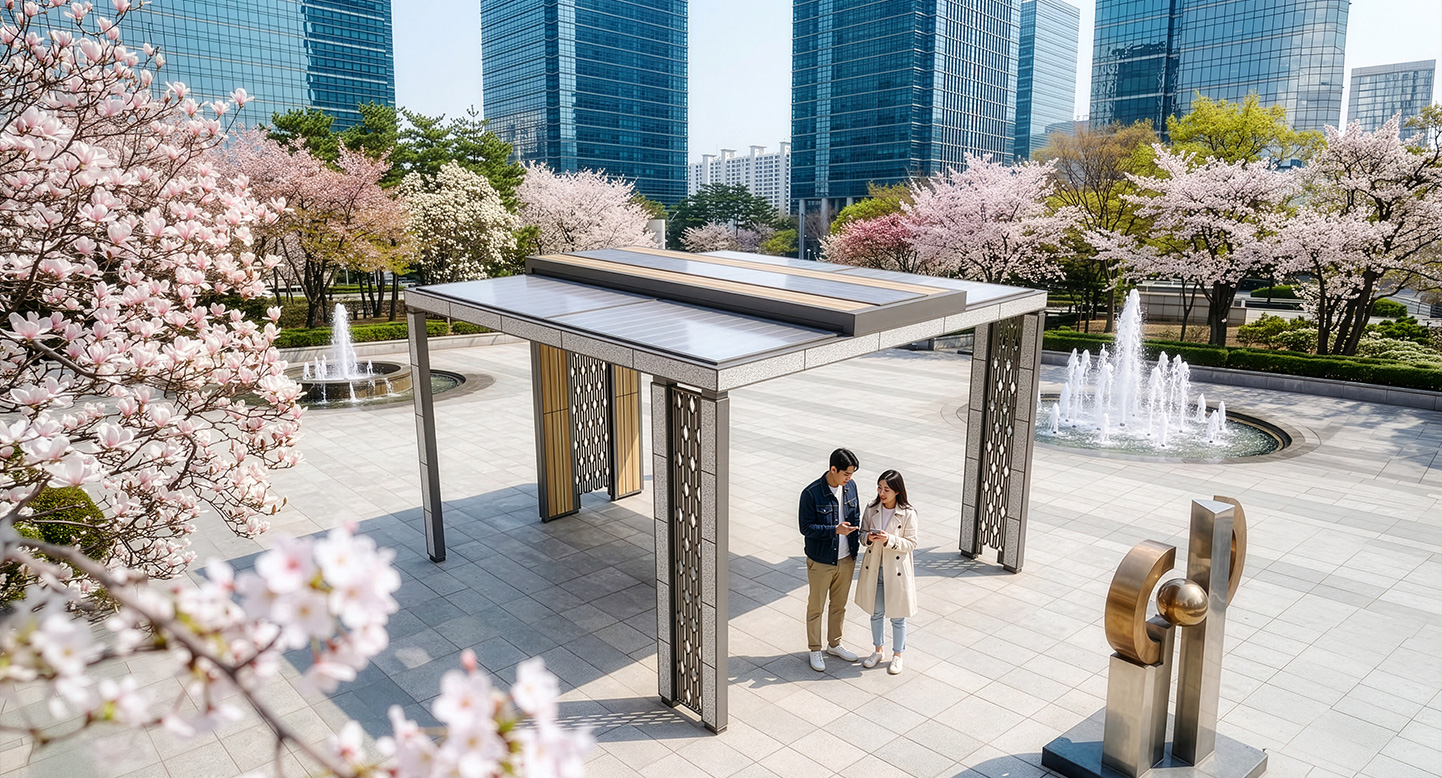 듀얼브릿지 퍼걸러 (Dual Bridge Pergola)|GC-P-1180 제품목록으로 바로가기 자료 및 바로가기 나라장터 바로연결 도면 다운로드 시공사진 보러가기 기타 중앙 우드 포인트와 양쪽으로 펼쳐진 듀얼 루프 구조가 공간에 깊이감과 리듬감을 부여합니다. 펀칭 메탈 파티션이 시각적 포인트 역할을 하며, 보행 동선과 휴식 공간을 자연스럽게 구분해주는 감각적 쉼터입니다. 제품명 듀얼브릿지 퍼걸러 (Dual Bridge Pergola)|GC-P-1180 물품식별번호 25540485 규격 3,900 × 3,800 × 2,800(H) 재질 stl, galvanized, polycarbonate, hard wood, hpl 듀얼브릿지 퍼걸러 (Dual Bridge Pergola)|GC-P-1180 물품식별번호 25540485 규격 3,900 × 3,800 × 2,800(H) 재질 stl, galvanized, polycarbonate, hard wood, hpl 기타 중앙 우드 포인트와 양쪽으로 펼쳐진 듀얼 루프 구조가 공간에 깊이감과 리듬감을 부여합니다. 펀칭 메탈 파티션이 시각적 포인트 역할을 하며, 보행 동선과 휴식 공간을 자연스럽게 구분해주는 감각적 쉼터입니다. 자료 및 바로가기 나라장터 바로연결 도면 다운로드 시공사진 보러가기