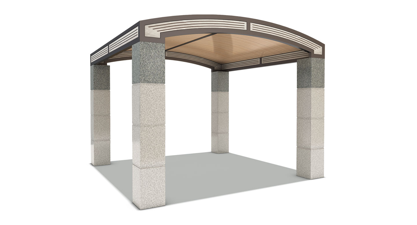 아치스톤 쉼터 (Arch Stone Shelter)|GC-P-2114 제품목록으로 바로가기 자료 및 바로가기 나라장터 바로연결 도면 다운로드 시공사진 보러가기 기타 부드러운 곡선 지붕과 견고한 석재 기둥을 조합해 안정감과 세련미를 동시에 담아낸 쉼터입니다. 모던한 라인과 클래식 요소가 자연환경과 조화롭게 어우러져 다양한 커뮤니티 공간에 잘 어울립니다. 제품명 아치스톤 쉼터 (Arch Stone Shelter)|GC-P-2114 물품식별번호 25572465 규격 4,000 × 4,000 × 3,100(H) 재질 stl, galvanized, polycarbonate, 화강석 아치스톤 쉼터 (Arch Stone Shelter)|GC-P-2114 물품식별번호 25572465 규격 4,000 × 4,000 × 3,100(H) 재질 stl, galvanized, polycarbonate, 화강석 기타 부드러운 곡선 지붕과 견고한 석재 기둥을 조합해 안정감과 세련미를 동시에 담아낸 쉼터입니다. 모던한 라인과 클래식 요소가 자연환경과 조화롭게 어우러져 다양한 커뮤니티 공간에 잘 어울립니다. 자료 및 바로가기 나라장터 바로연결 도면 다운로드 시공사진 보러가기