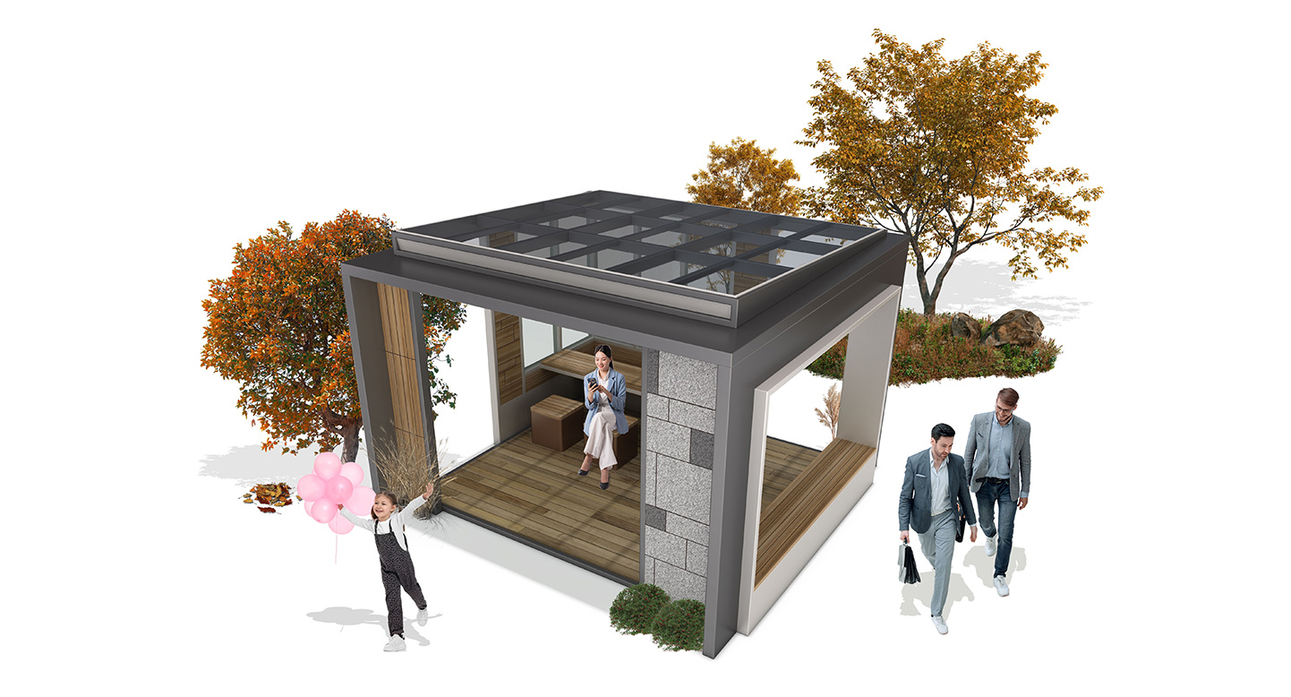 스퀘어쉼 파빌리온 (Square Shim Pavilion)|GC-P-1189 제품목록으로 바로가기 자료 및 바로가기 나라장터 바로연결 도면 다운로드 시공사진 보러가기 기타 채광형 지붕과 목재 데크가 편안한 휴식을 제공하며, 개방형 좌석 구성이 주민·가족·직장인의 소통과 커뮤니티 활동을 자연스럽게 지원하는 사계절형 쉼터입니다. 제품명 스퀘어쉼 파빌리온 (Square Shim Pavilion)|GC-P-1189 물품식별번호 25540495 규격 4,000 × 3,800 × 2,815(H) 재질 stl, galvanized, polycarbonate, hard wood, hpl 스퀘어쉼 파빌리온 (Square Shim Pavilion)|GC-P-1189 물품식별번호 25540495 규격 4,000 × 3,800 × 2,815(H) 재질 stl, galvanized, polycarbonate, hard wood, hpl 기타 채광형 지붕과 목재 데크가 편안한 휴식을 제공하며, 개방형 좌석 구성이 주민·가족·직장인의 소통과 커뮤니티 활동을 자연스럽게 지원하는 사계절형 쉼터입니다. 자료 및 바로가기 나라장터 바로연결 도면 다운로드 시공사진 보러가기