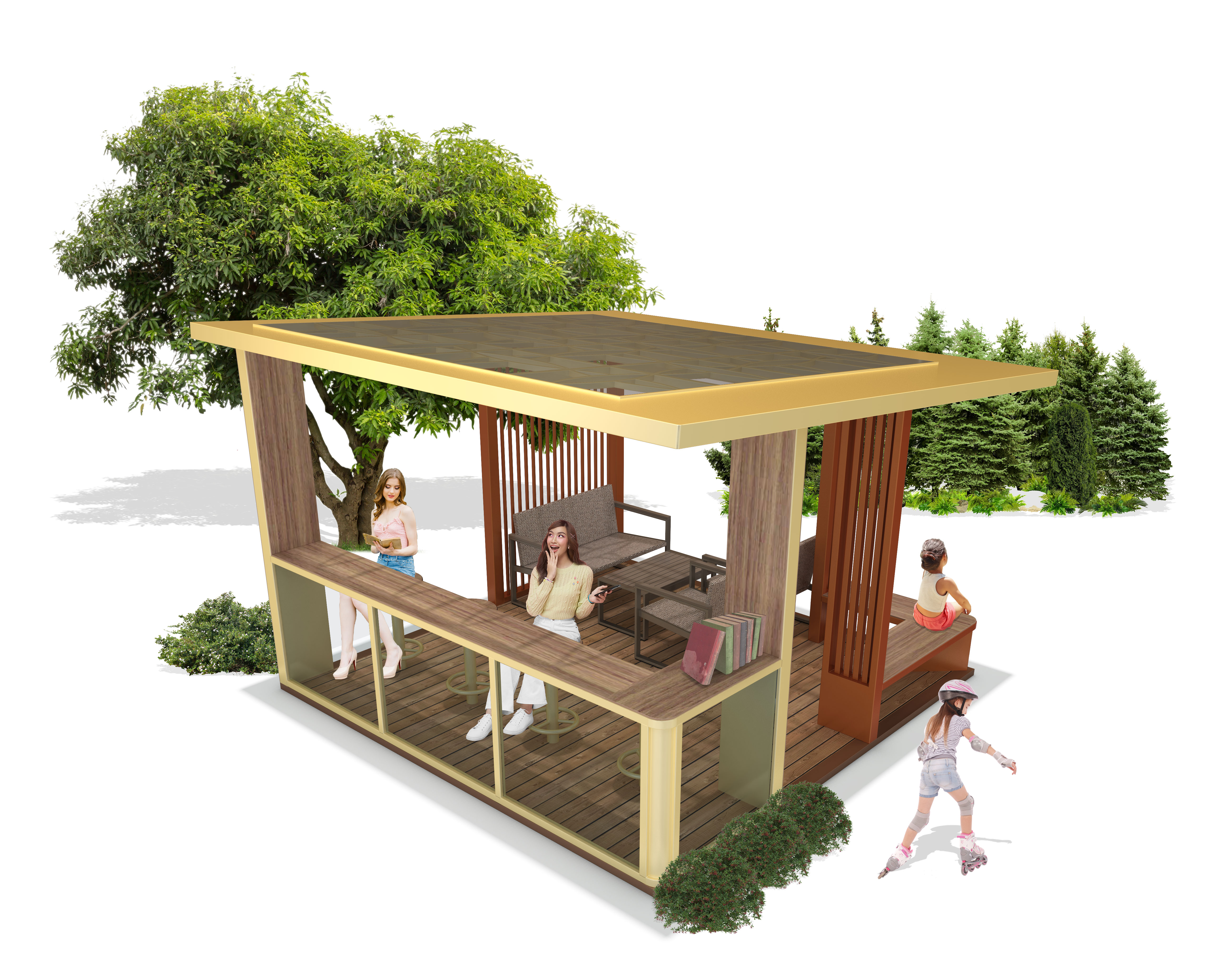 라운드쉼 파빌리온 (Round Shim Pavilion)|GC-P-188 제품목록으로 바로가기 자료 및 바로가기 나라장터 바로연결 도면 다운로드 시공사진 보러가기 기타 넓은 처마와 개방형 공간이 편안한 휴식을 제공하며, 목재 데크와 좌석 구성이 커뮤니티 활동과 일상 휴식을 자연스럽게 지원하는 공원·단지형 쉼터입니다. 제품명 라운드쉼 파빌리온 (Round Shim Pavilion)|GC-P-188 물품식별번호 24751523 규격 4,000 × 3,993 × 2,600(H) 재질 stl, hard wood, galvanized, polycarbonate, hpl 라운드쉼 파빌리온 (Round Shim Pavilion)|GC-P-188 물품식별번호 24751523 규격 4,000 × 3,993 × 2,600(H) 재질 stl, hard wood, galvanized, polycarbonate, hpl 기타 넓은 처마와 개방형 공간이 편안한 휴식을 제공하며, 목재 데크와 좌석 구성이 커뮤니티 활동과 일상 휴식을 자연스럽게 지원하는 공원·단지형 쉼터입니다. 자료 및 바로가기 나라장터 바로연결 도면 다운로드 시공사진 보러가기