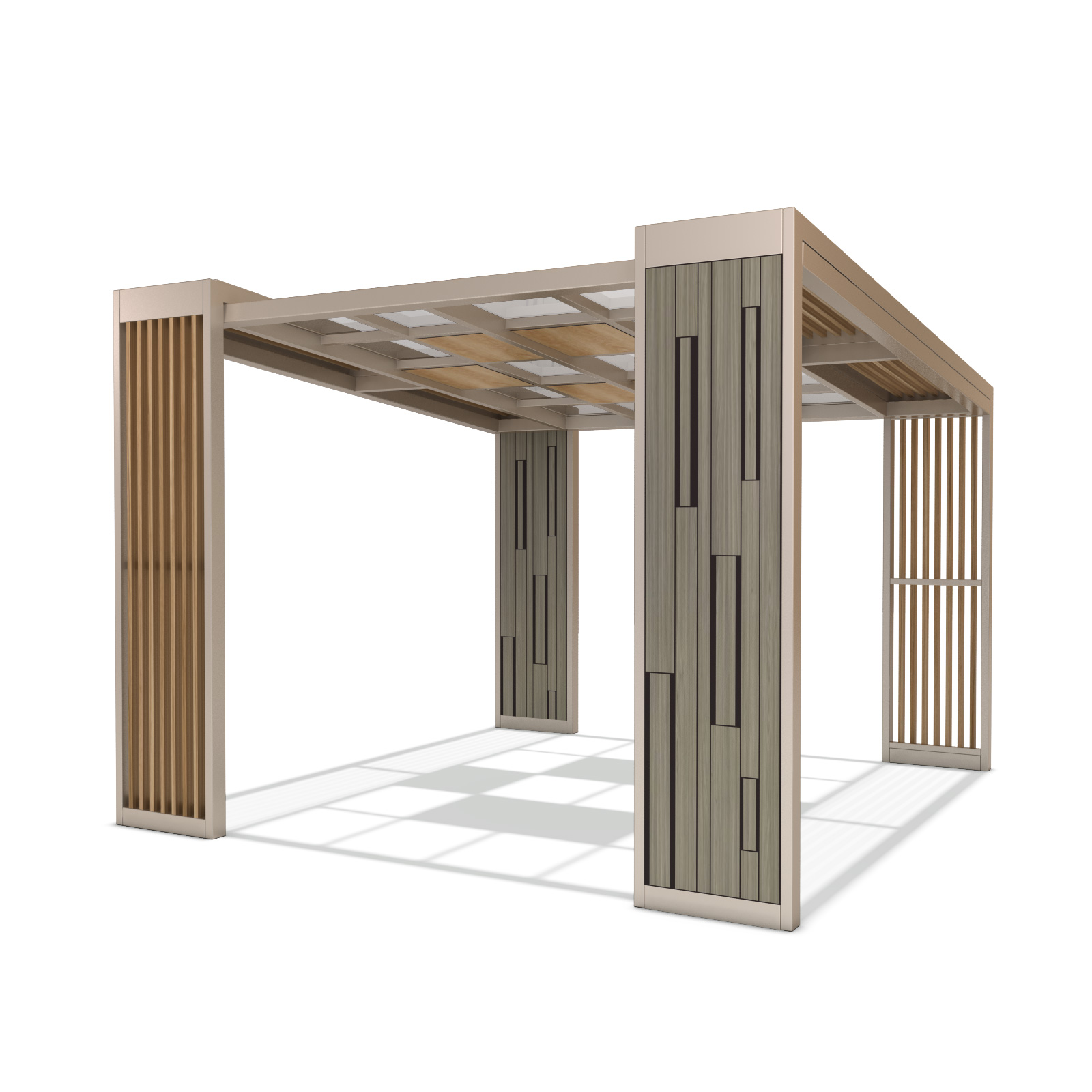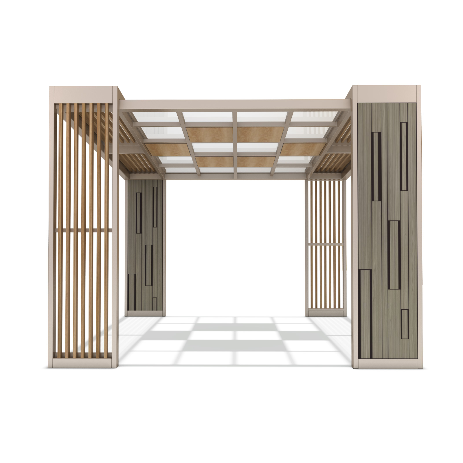 베이지 모듈 퍼걸러 (Beige Module Pergola)|GC-P-2118 제품목록으로 바로가기 자료 및 바로가기 나라장터 바로연결 도면 다운로드 시공사진 보러가기 기타 부드러운 베이지 톤과 우드 슬랫을 조합해 감성적이면서도 세련된 분위기를 담아낸 퍼걸러입니다. 기둥의 모듈형 패턴이 공간에 리듬감을 더하며, 공원·커뮤니티 공간에 자연스럽게 어우러집니다. 제품명 베이지 모듈 퍼걸러 (Beige Module Pergola)|GC-P-2118 물품식별번호 25615522 규격 4,000 × 4,000 × 2,880(H) 재질 stl, galvanized, polycarbonate, hard wood 베이지 모듈 퍼걸러 (Beige Module Pergola)|GC-P-2118 물품식별번호 25615522 규격 4,000 × 4,000 × 2,880(H) 재질 stl, galvanized, polycarbonate, hard wood 기타 부드러운 베이지 톤과 우드 슬랫을 조합해 감성적이면서도 세련된 분위기를 담아낸 퍼걸러입니다. 기둥의 모듈형 패턴이 공간에 리듬감을 더하며, 공원·커뮤니티 공간에 자연스럽게 어우러집니다. 자료 및 바로가기 나라장터 바로연결 도면 다운로드 시공사진 보러가기