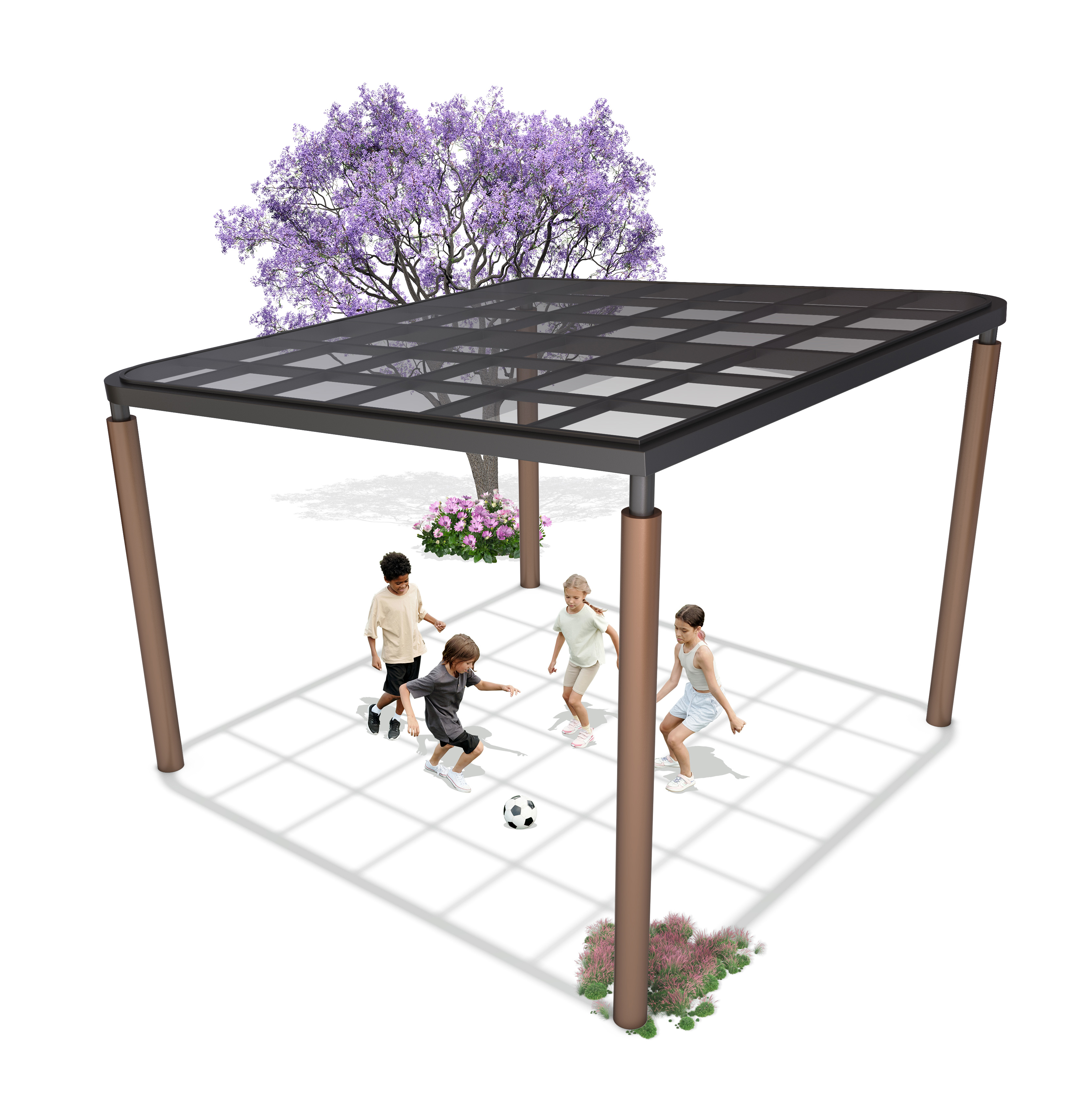 라운드 그리드 퍼걸러 (Round Grid Pergola)|GC-P-2141 제품목록으로 바로가기 자료 및 바로가기 나라장터 바로연결 도면 다운로드 시공사진 보러가기 기타 부드러운 곡선 기둥과 깔끔한 그리드 지붕을 조합해 밝고 경쾌한 분위기를 연출한 퍼걸러입니다. 개방형 구조로 어린이 활동 공간에 특히 잘 어울리며, 바닥에 드리워지는 그리드 그림자가 공간에 재미를 더합니다. 제품명 라운드 그리드 퍼걸러 (Round Grid Pergola)|GC-P-2141 물품식별번호 25651663 규격 4,000 × 4,000 × 2,865(H) 재질 stl, polycarbonate 라운드 그리드 퍼걸러 (Round Grid Pergola)|GC-P-2141 물품식별번호 25651663 규격 4,000 × 4,000 × 2,865(H) 재질 stl, polycarbonate 기타 부드러운 곡선 기둥과 깔끔한 그리드 지붕을 조합해 밝고 경쾌한 분위기를 연출한 퍼걸러입니다. 개방형 구조로 어린이 활동 공간에 특히 잘 어울리며, 바닥에 드리워지는 그리드 그림자가 공간에 재미를 더합니다. 자료 및 바로가기 나라장터 바로연결 도면 다운로드 시공사진 보러가기