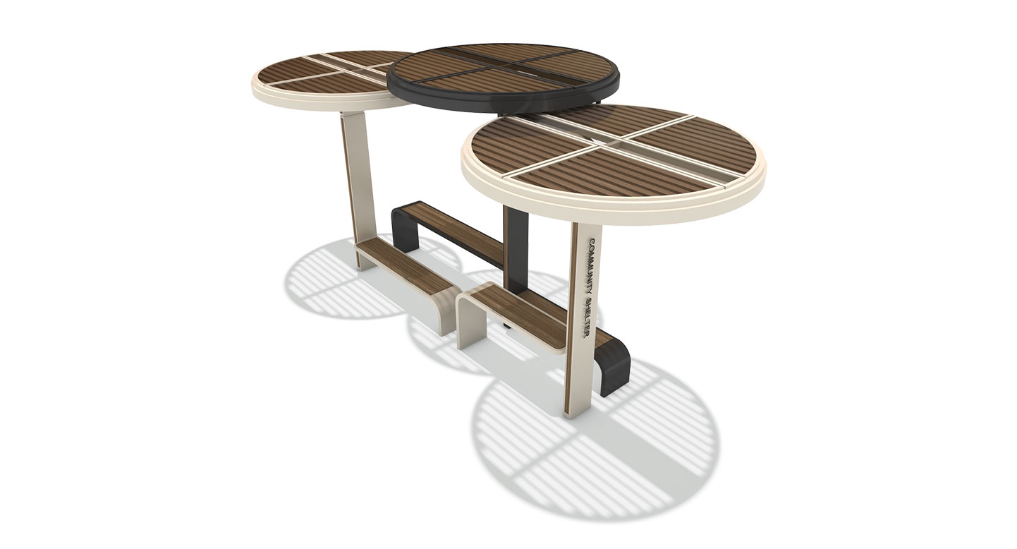트리오 서클 쉼터 (Trio Circle Shelter)|GC-P-339 제품목록으로 바로가기 자료 및 바로가기 나라장터 바로연결 도면 다운로드 시공사진 보러가기 기타 세 개의 원형 캐노피가 겹치며 자연스러운 리듬감을 만들고, 우드 패턴 상부와 긴 벤치가 어우러져 사람들이 편안하게 모여 쉬고 소통할 수 있는 열린 커뮤니티 쉼터입니다. 제품명 트리오 서클 쉼터 (Trio Circle Shelter)|GC-P-339 물품식별번호 25565299 규격 6,400 × 3,000 × 3,050(H) 재질 stl, galvanized, polycarbonate, hard wood, hpl 트리오 서클 쉼터 (Trio Circle Shelter)|GC-P-339 물품식별번호 25565299 규격 6,400 × 3,000 × 3,050(H) 재질 stl, galvanized, polycarbonate, hard wood, hpl 기타 세 개의 원형 캐노피가 겹치며 자연스러운 리듬감을 만들고, 우드 패턴 상부와 긴 벤치가 어우러져 사람들이 편안하게 모여 쉬고 소통할 수 있는 열린 커뮤니티 쉼터입니다. 자료 및 바로가기 나라장터 바로연결 도면 다운로드 시공사진 보러가기