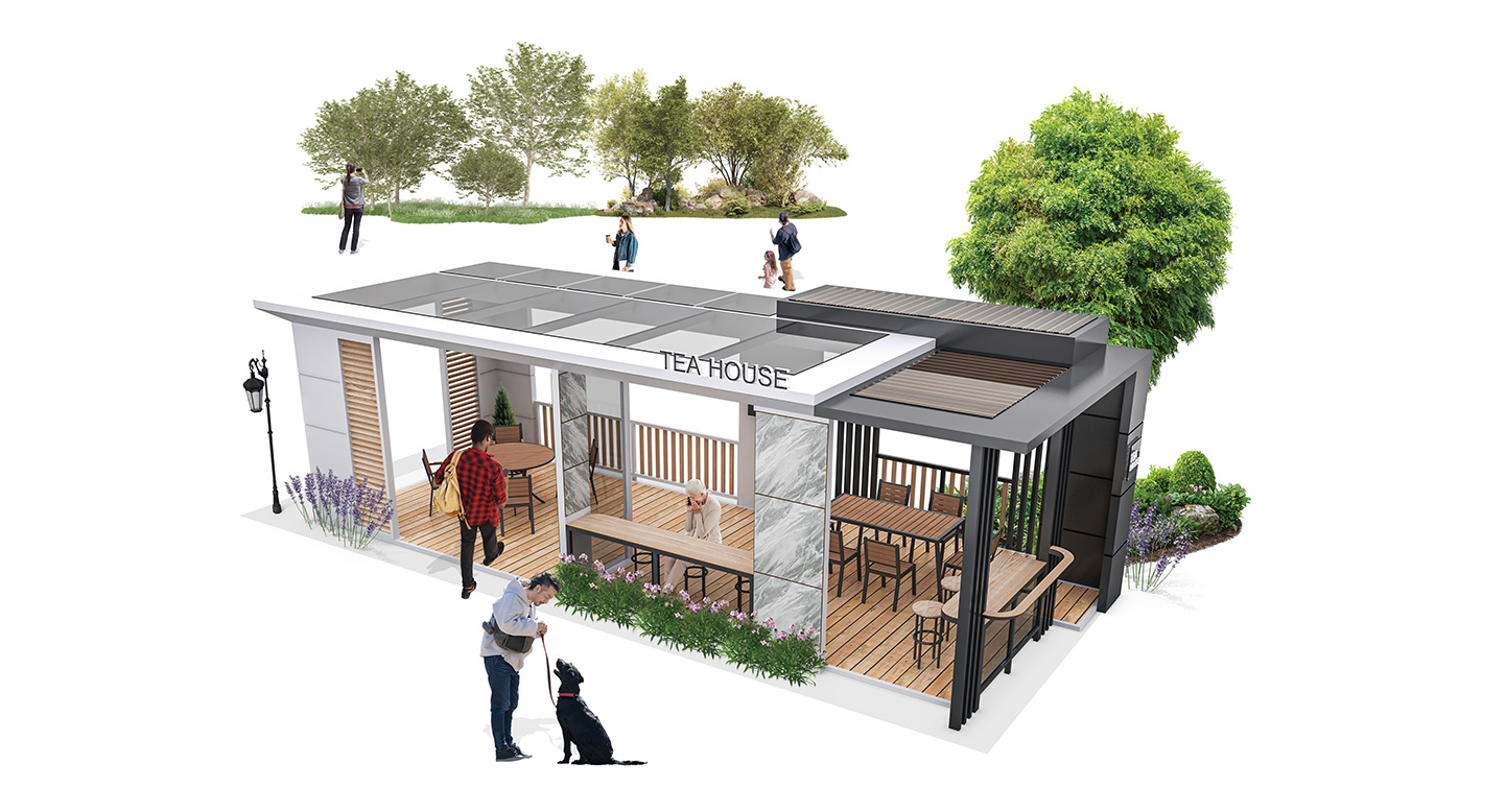 모던하우스 (Modern House)|GC-TH-016 제품목록으로 바로가기 자료 및 바로가기 나라장터 바로연결 도면 다운로드 시공사진 보러가기 기타 원형, 직각 테이블과 바 좌석이 실용적으로 구성된 모던하우스. 정제된 컬러와 균형 잡힌 레이아웃이 돋보이는 실용 중심 휴식 공간입니다. 제품명 모던하우스 (Modern House)|GC-TH-016 물품식별번호 25557013 규격 10,000 × 4,450 × 3,200(H) 재질 stl, glavannized, polycarbonate, hard wood, hpl, 강화유리 모던하우스 (Modern House)|GC-TH-016 물품식별번호 25557013 규격 10,000 × 4,450 × 3,200(H) 재질 stl, glavannized, polycarbonate, hard wood, hpl, 강화유리 기타 원형, 직각 테이블과 바 좌석이 실용적으로 구성된 모던하우스. 정제된 컬러와 균형 잡힌 레이아웃이 돋보이는 실용 중심 휴식 공간입니다. 자료 및 바로가기 나라장터 바로연결 도면 다운로드 시공사진 보러가기