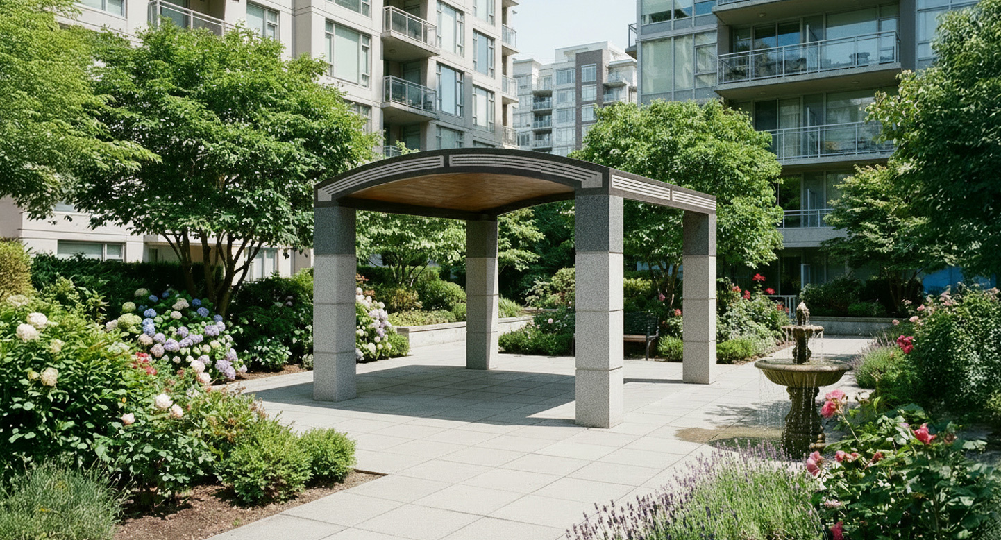 아치스톤 쉼터 (Arch Stone Shelter)|GC-P-2114 제품목록으로 바로가기 자료 및 바로가기 나라장터 바로연결 도면 다운로드 시공사진 보러가기 기타 부드러운 곡선 지붕과 견고한 석재 기둥을 조합해 안정감과 세련미를 동시에 담아낸 쉼터입니다. 모던한 라인과 클래식 요소가 자연환경과 조화롭게 어우러져 다양한 커뮤니티 공간에 잘 어울립니다. 제품명 아치스톤 쉼터 (Arch Stone Shelter)|GC-P-2114 물품식별번호 25572465 규격 4,000 × 4,000 × 3,100(H) 재질 stl, galvanized, polycarbonate, 화강석 아치스톤 쉼터 (Arch Stone Shelter)|GC-P-2114 물품식별번호 25572465 규격 4,000 × 4,000 × 3,100(H) 재질 stl, galvanized, polycarbonate, 화강석 기타 부드러운 곡선 지붕과 견고한 석재 기둥을 조합해 안정감과 세련미를 동시에 담아낸 쉼터입니다. 모던한 라인과 클래식 요소가 자연환경과 조화롭게 어우러져 다양한 커뮤니티 공간에 잘 어울립니다. 자료 및 바로가기 나라장터 바로연결 도면 다운로드 시공사진 보러가기