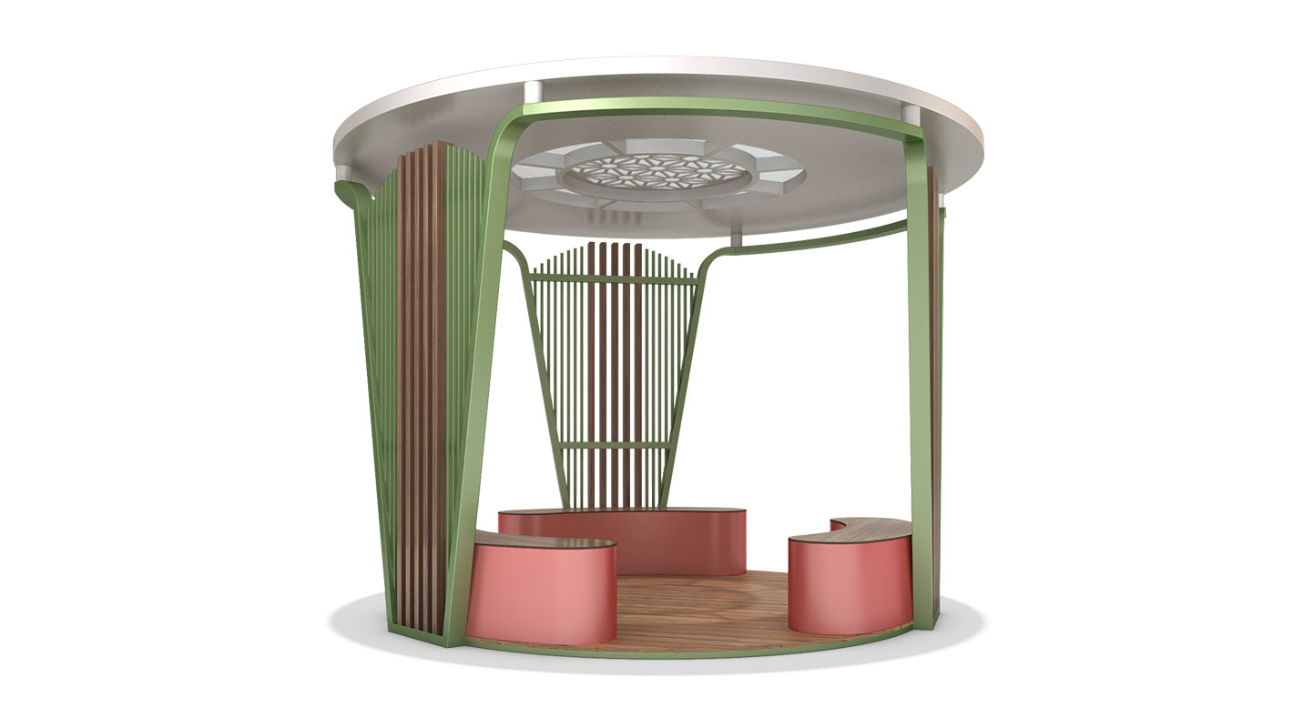 플로럴 커브 쉼터 (Floral Curve Shelter)|GC-P-310 제품목록으로 바로가기 자료 및 바로가기 나라장터 바로연결 도면 다운로드 시공사진 보러가기 기타 곡선 벤치와 파스텔 컬러를 조합해 부드럽고 친근한 분위기를 연출한 쉼터입니다. 상부의 패턴 창은 은은한 빛을 투과시켜 자연과 어우러진 아늑한 휴식 공간을 제공합니다. 제품명 플로럴 커브 쉼터 (Floral Curve Shelter)|GC-P-310 물품식별번호 24718186 규격 3,800 × 3,800 × 2,675(H) 재질 stl, galvanized, polycarbonate, hard wood 플로럴 커브 쉼터 (Floral Curve Shelter)|GC-P-310 물품식별번호 24718186 규격 3,800 × 3,800 × 2,675(H) 재질 stl, galvanized, polycarbonate, hard wood 기타 곡선 벤치와 파스텔 컬러를 조합해 부드럽고 친근한 분위기를 연출한 쉼터입니다. 상부의 패턴 창은 은은한 빛을 투과시켜 자연과 어우러진 아늑한 휴식 공간을 제공합니다. 자료 및 바로가기 나라장터 바로연결 도면 다운로드 시공사진 보러가기