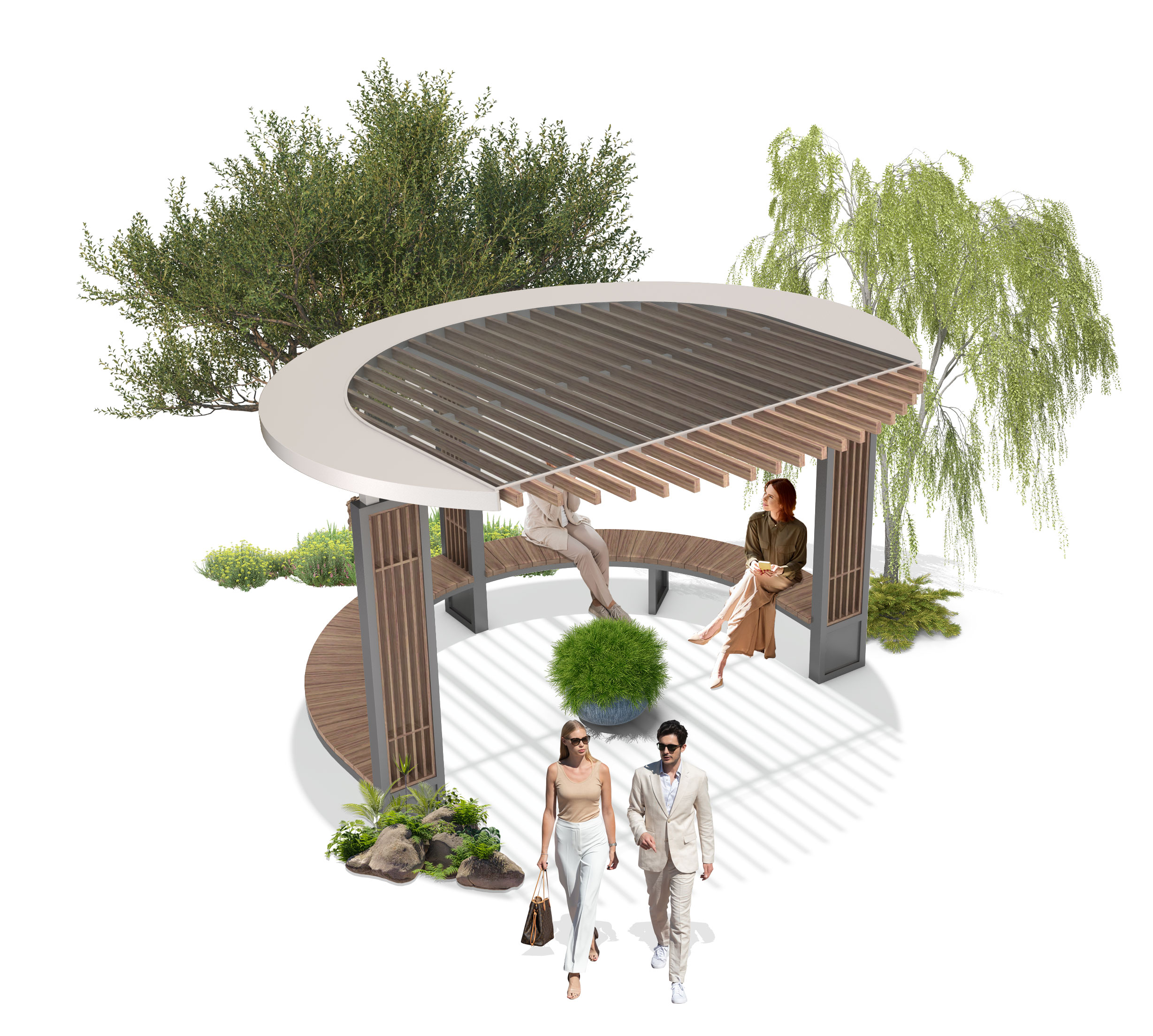 슬릿 아치 퍼걸러 (Slit Arch Pergola)|GC-P-306 제품목록으로 바로가기 자료 및 바로가기 나라장터 바로연결 도면 다운로드 시공사진 보러가기 기타 부드러운 아치 구조와 규칙적인 슬릿 쉐이딩을 결합해 자연스러운 빛 패턴을 만드는 쉼터입니다. 곡선 벤치와 개방형 구조가 어우러져 공원·단지에 편안한 흐름과 휴식 분위기를 제공합니다. 제품명 슬릿 아치 퍼걸러 (Slit Arch Pergola)|GC-P-306 물품식별번호 24099095 규격 3,800 × 3,792 × 2,530(H) 재질 stl, galvanized, polycarbonate, hard wood 슬릿 아치 퍼걸러 (Slit Arch Pergola)|GC-P-306 물품식별번호 24099095 규격 3,800 × 3,792 × 2,530(H) 재질 stl, galvanized, polycarbonate, hard wood 기타 부드러운 아치 구조와 규칙적인 슬릿 쉐이딩을 결합해 자연스러운 빛 패턴을 만드는 쉼터입니다. 곡선 벤치와 개방형 구조가 어우러져 공원·단지에 편안한 흐름과 휴식 분위기를 제공합니다. 자료 및 바로가기 나라장터 바로연결 도면 다운로드 시공사진 보러가기